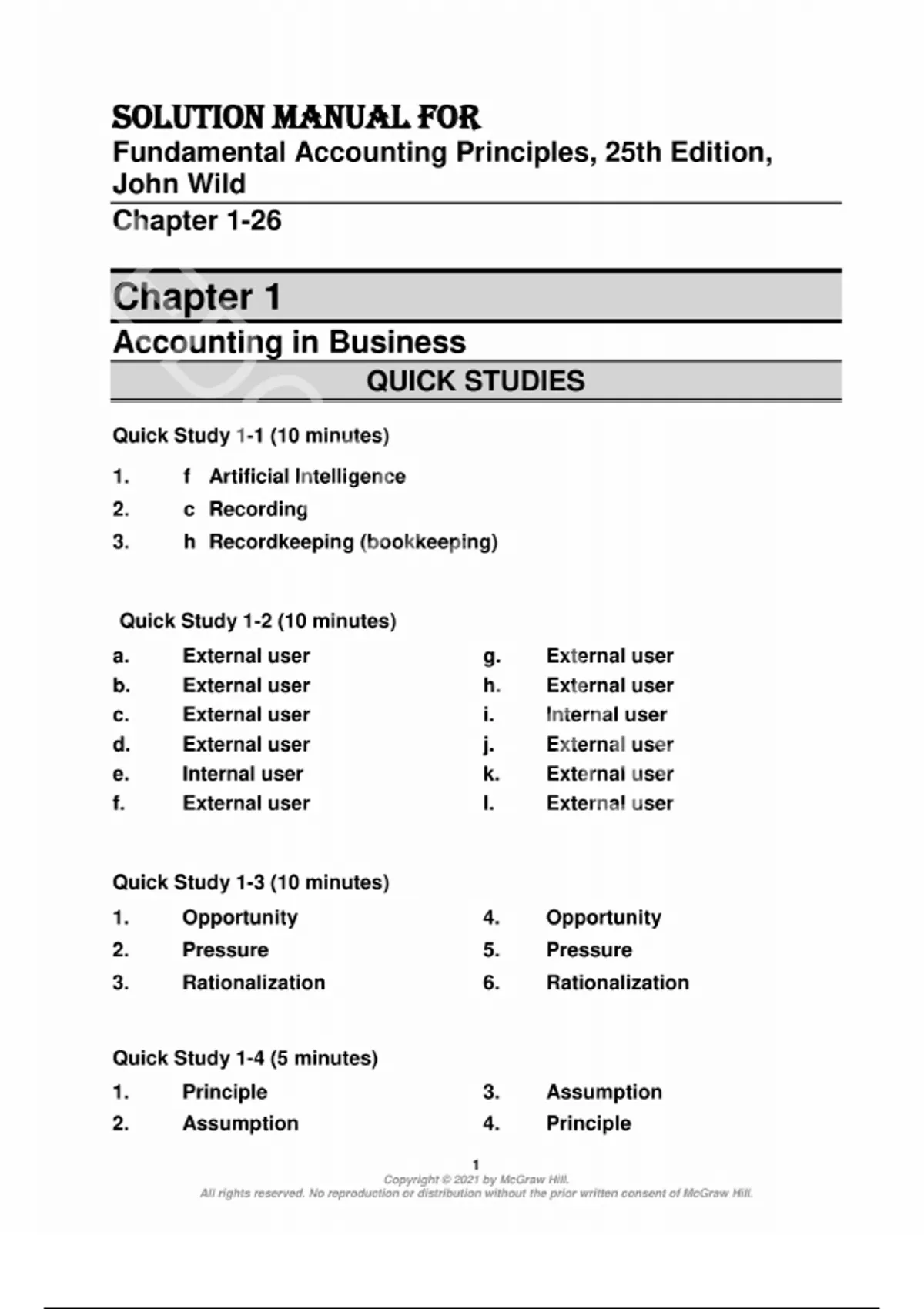 Test Bank For Fundamental Accounting Principles, 25th Edition by John Wild and Ken Shaw, Kermit Larson