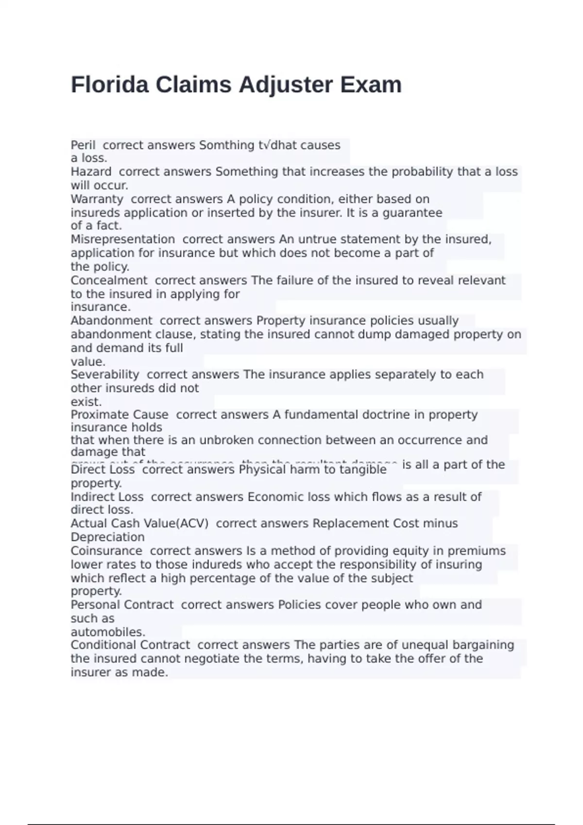 Abandonment correct answers Property insurance policies usually