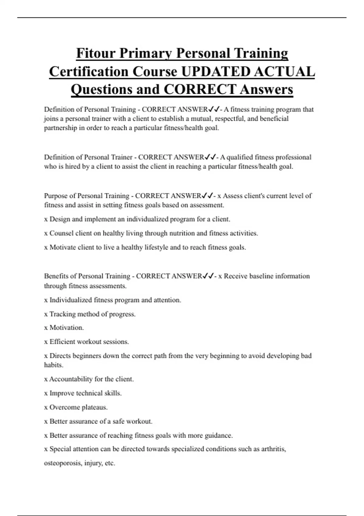 ,Benefits of Personal Training (what will a good PT do ?) - CORRECT ANSWER✔✔- x