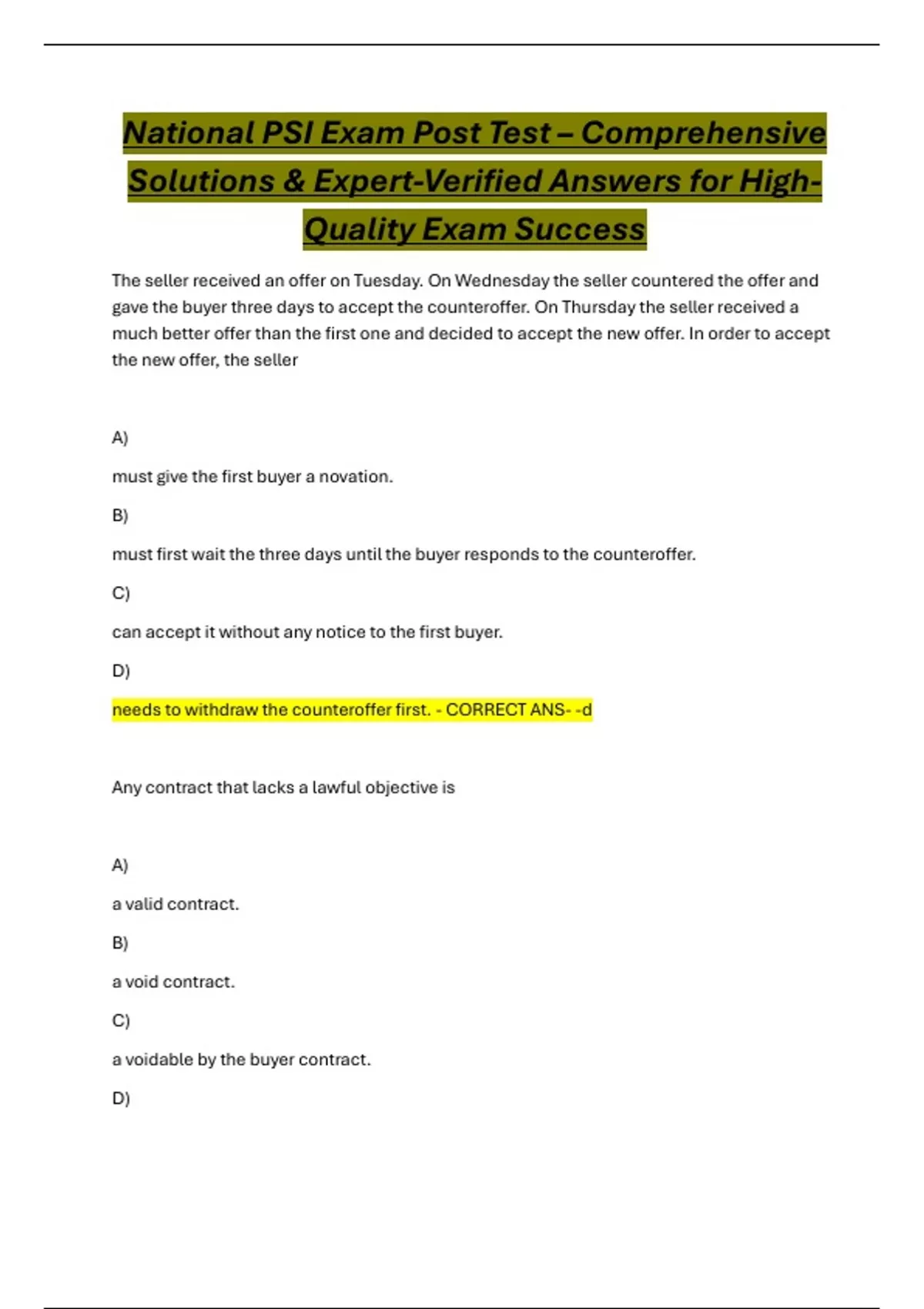 needs to withdraw the counteroffer first. - CORRECT ANS- -d