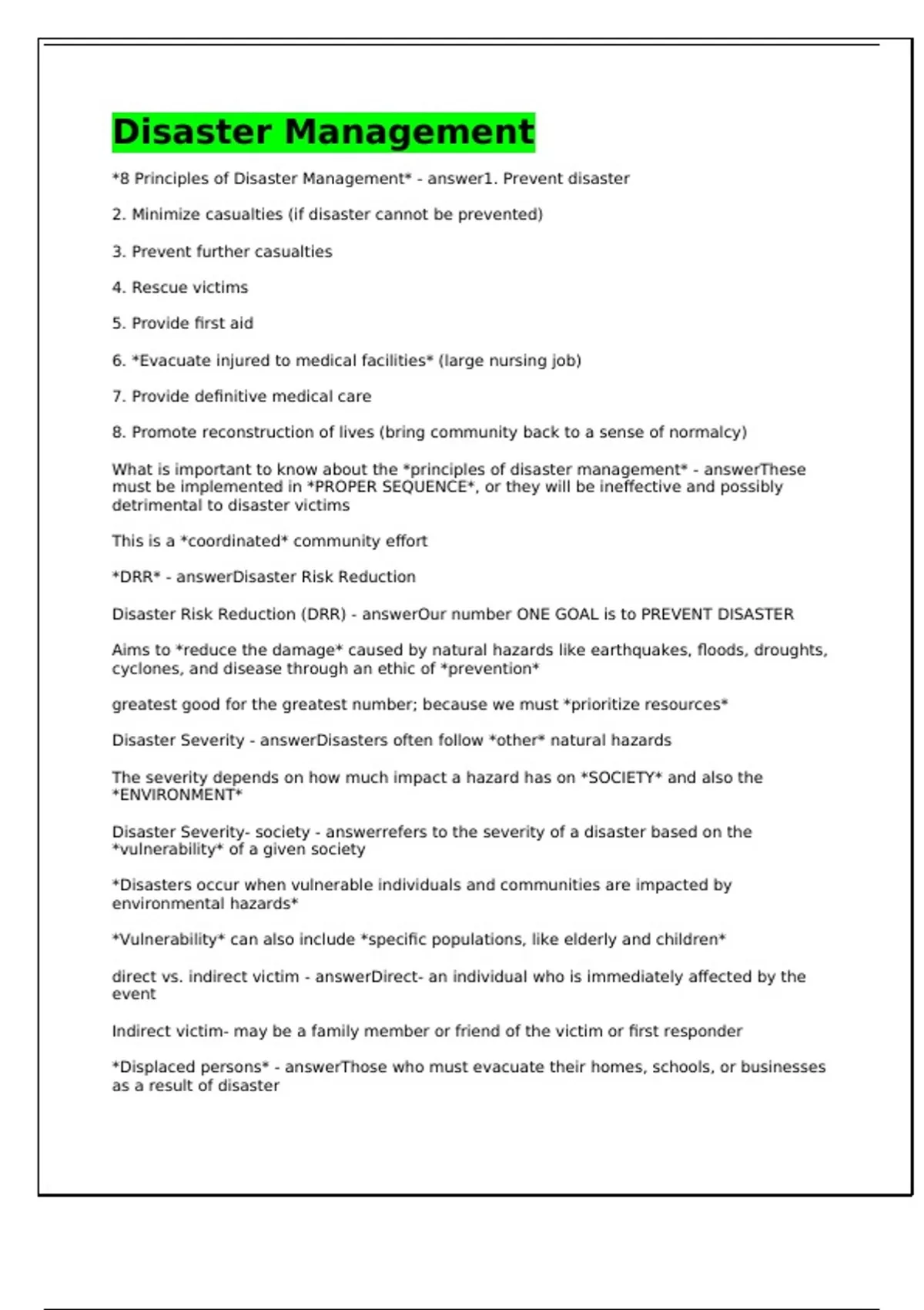 What is important to know about the *principles of disaster management* - answerThese