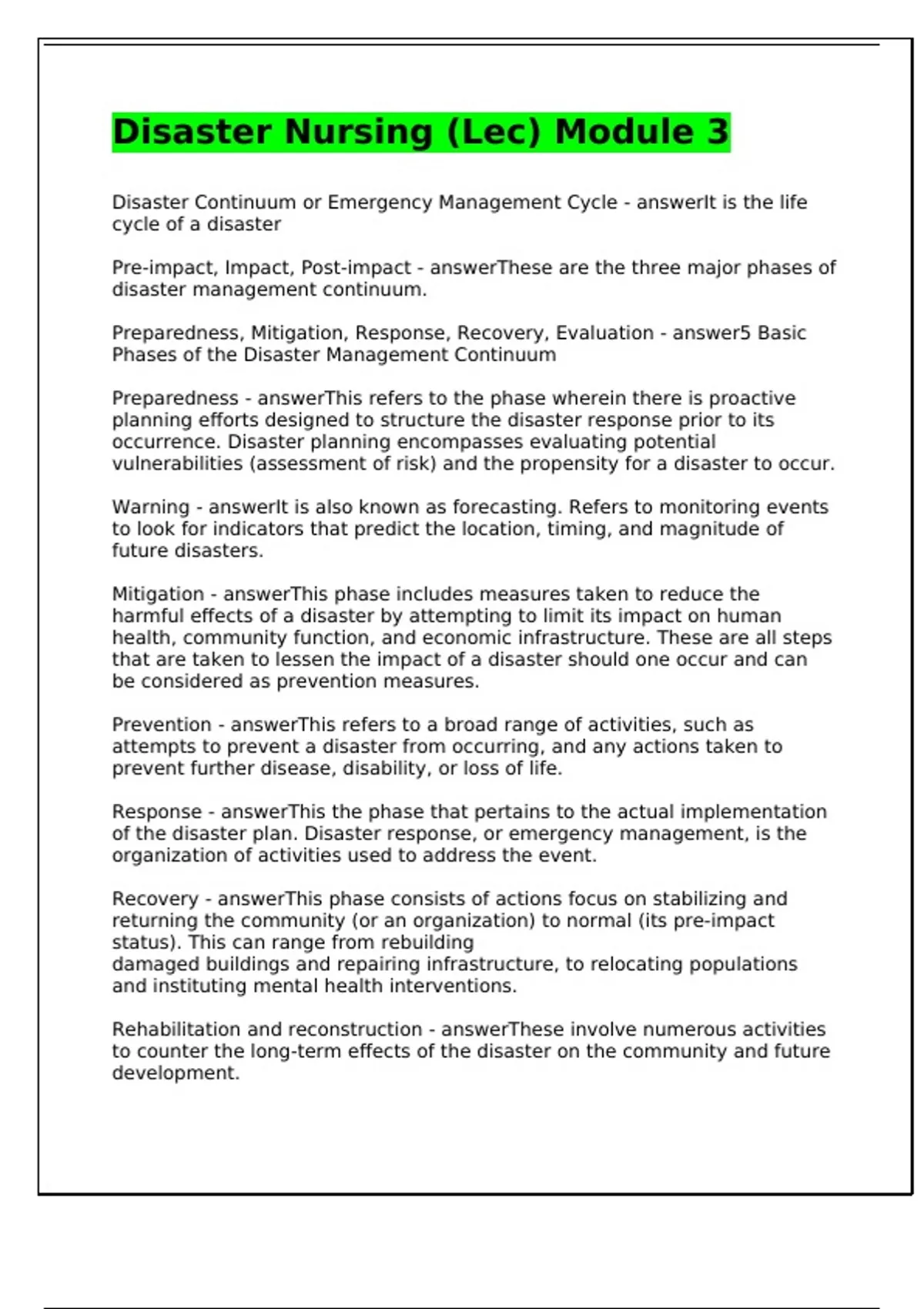 Disaster Nursing (Lec) Module 3