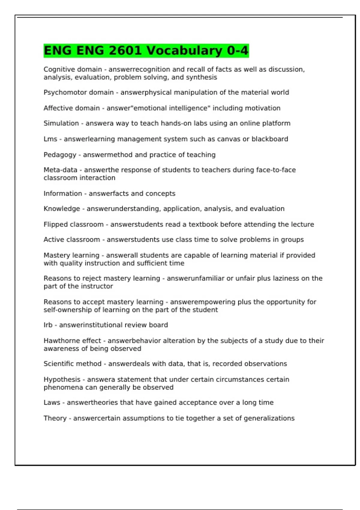 Cognitive domain - answerrecognition and recall of facts as well as discussion,