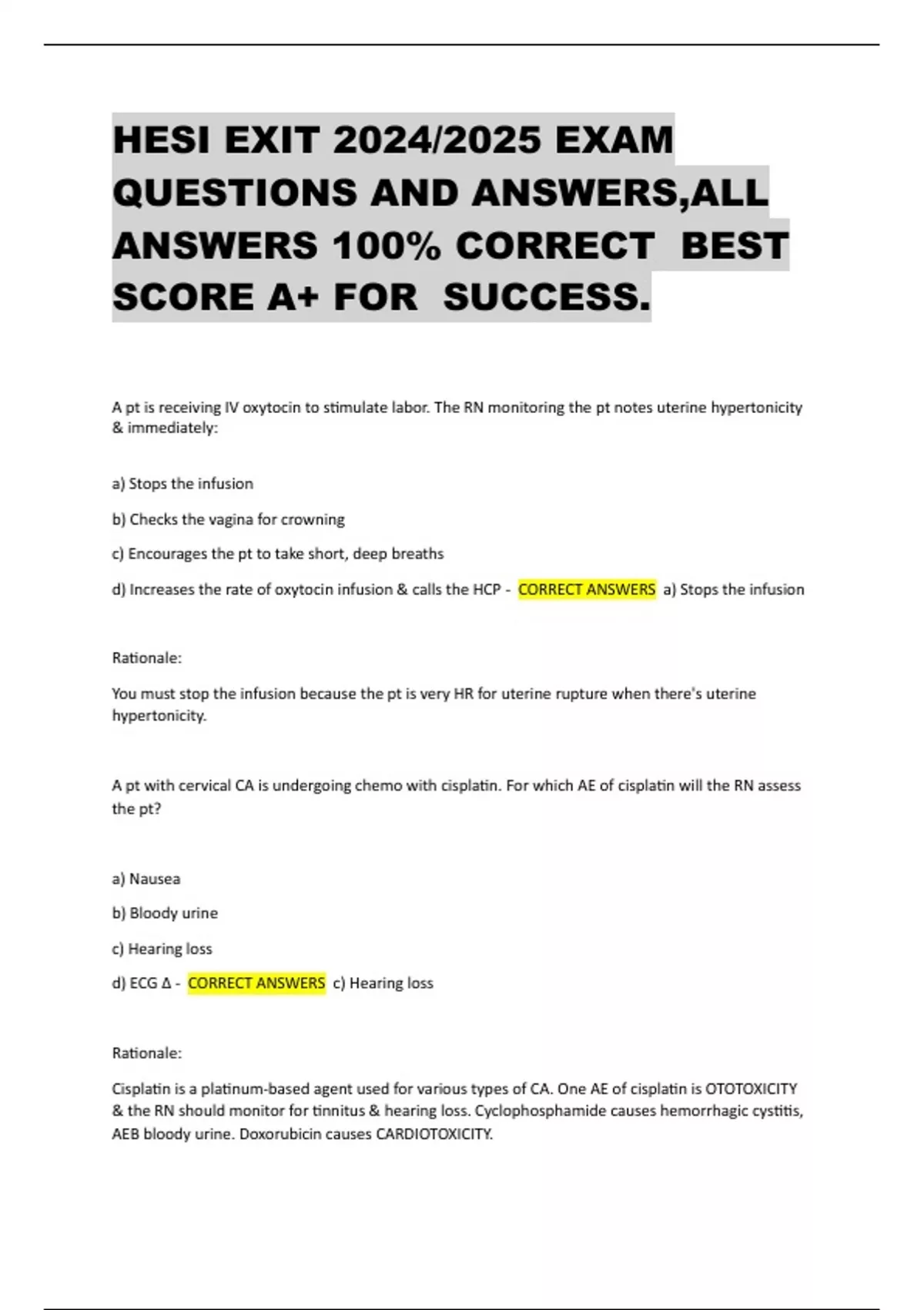 d) Increases the rate of oxytocin infusion & calls the HCP - CORRECT ANSWERS a) Stops the infusion