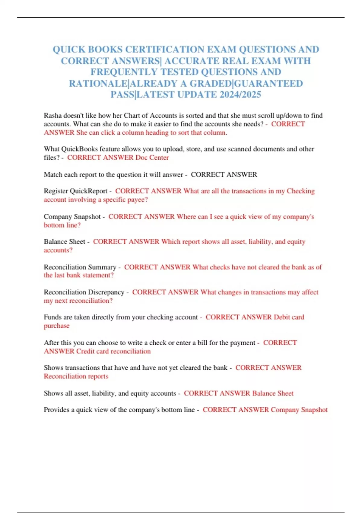 QUICK BOOKS CERTIFICATION EXAM QUESTIONS AND CORRECT ANSWERS| ACCURATE REAL EXAM WITH FREQUENTLY TESTED QUESTIONS AND RATIONALE|ALREADY A GRADED|GUARANTEED PASS|LATEST UPDATE 2024/2025QUICK BOOKS CERTIFICATION EXAM QUESTIONS AND CORRECT ANSWERS| ACCURATE REAL EXAM WITH FREQUENTLY TESTED QUESTIONS AND RATIONALE|ALREADY A GRADED|GUARANTEED PASS|LATEST UPDATE 2024/2025QUICK BOOKS CERTIFICATION EXAM QUESTIONS AND CORRECT ANSWERS| ACCURATE REAL EXAM WITH FREQUENTLY TESTED QUESTIONS AND RATIONALE|ALREADY A GRADED|GUARANTEED PASS|LATEST UPDATE 2024/2025