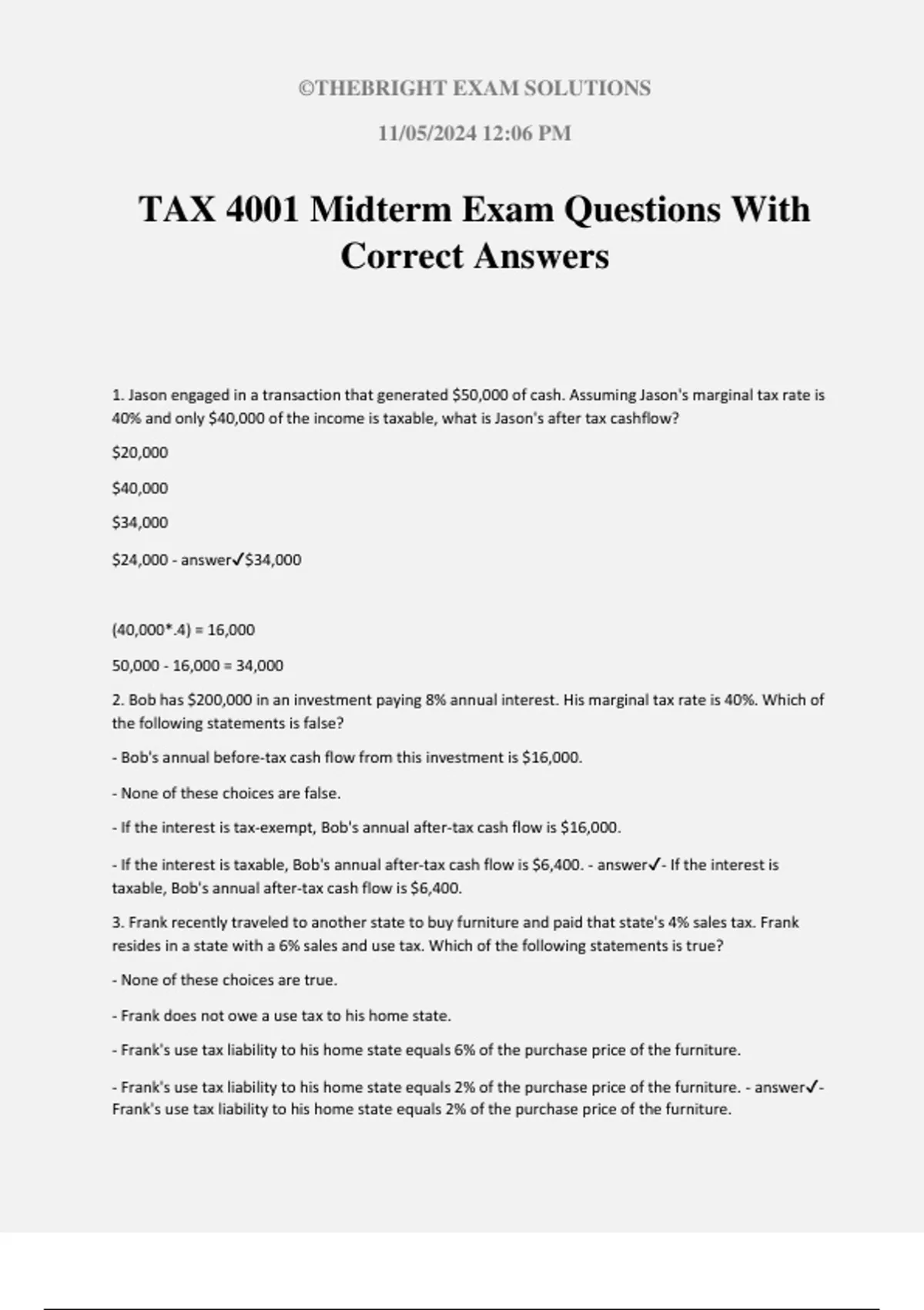 1. Jason engaged in a transaction that generated $50,000 of cash. Assuming Jason's marginal tax rate is