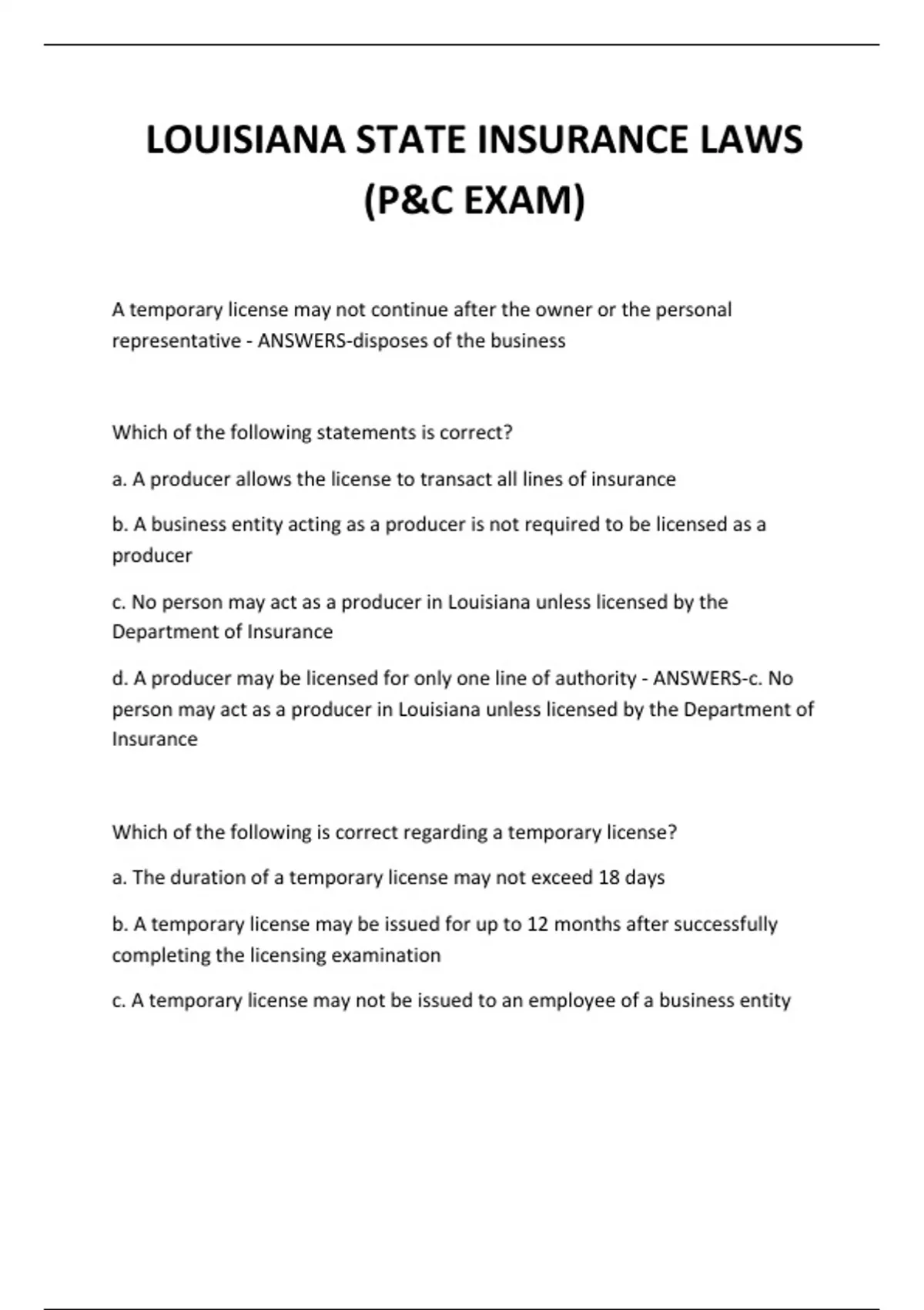 d. A producer may be licensed for only one line of authority - ANSWERS-c. No