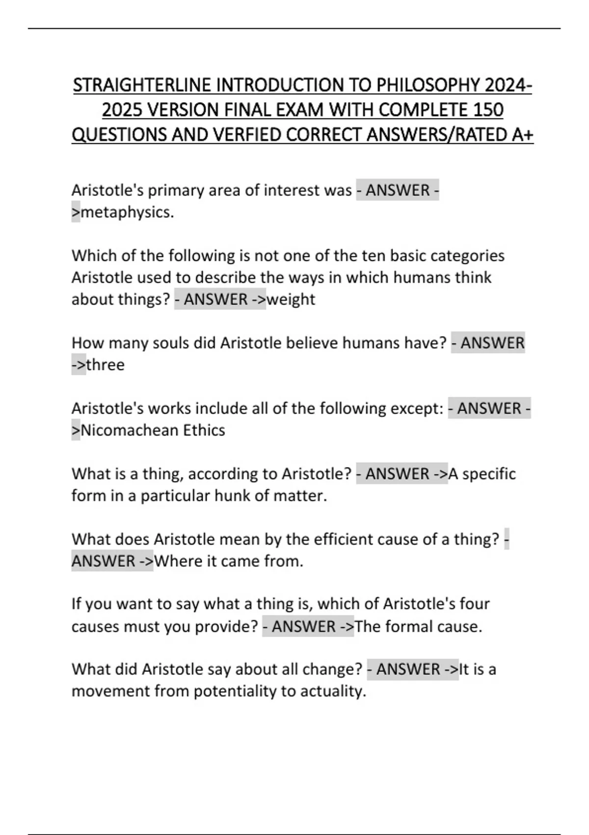 QUESTIONS AND VERFIED CORRECT ANSWERS/RATED A+