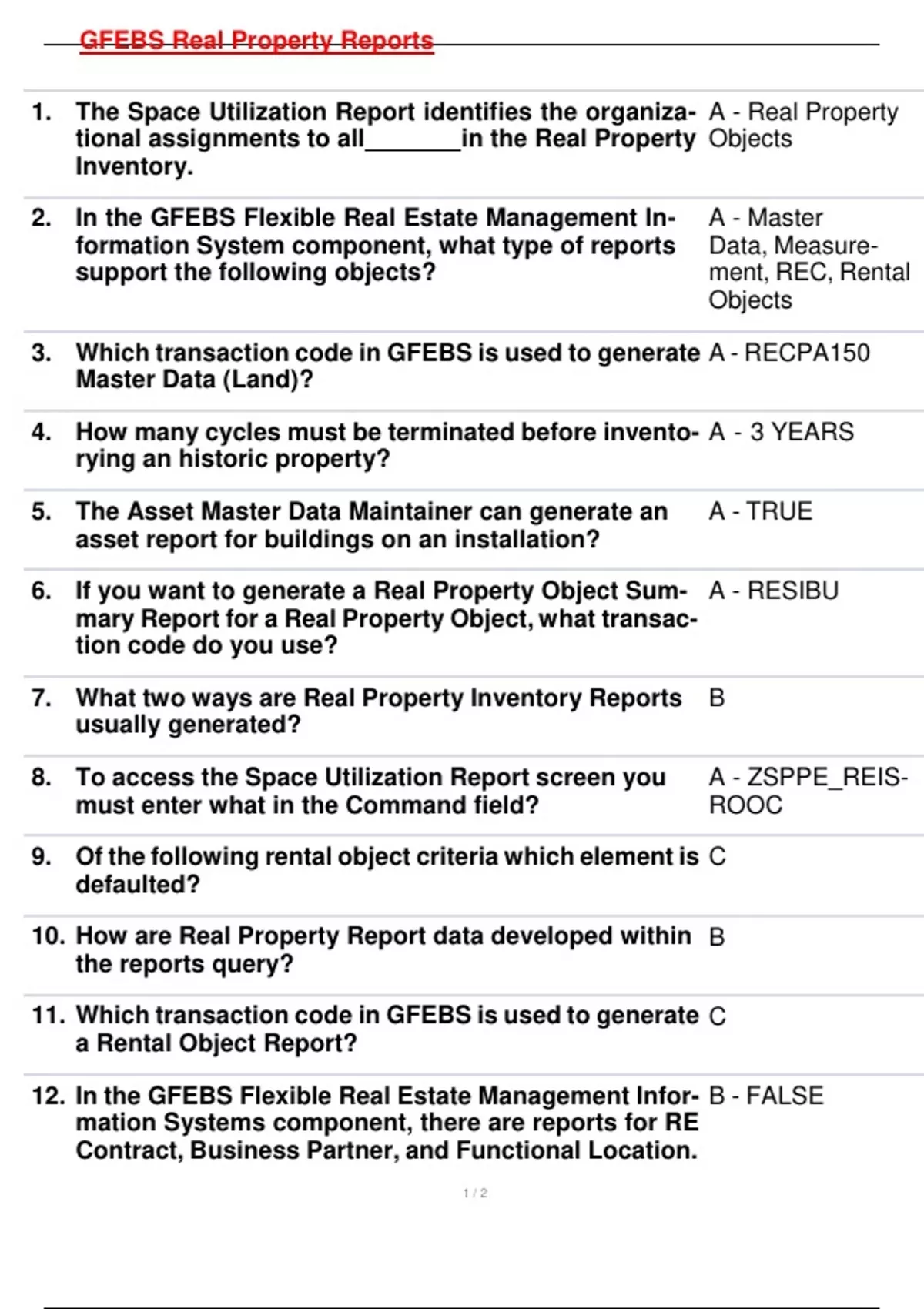 12. In the GFEBS Flexible Real Estate Management Infor- B - FALSE