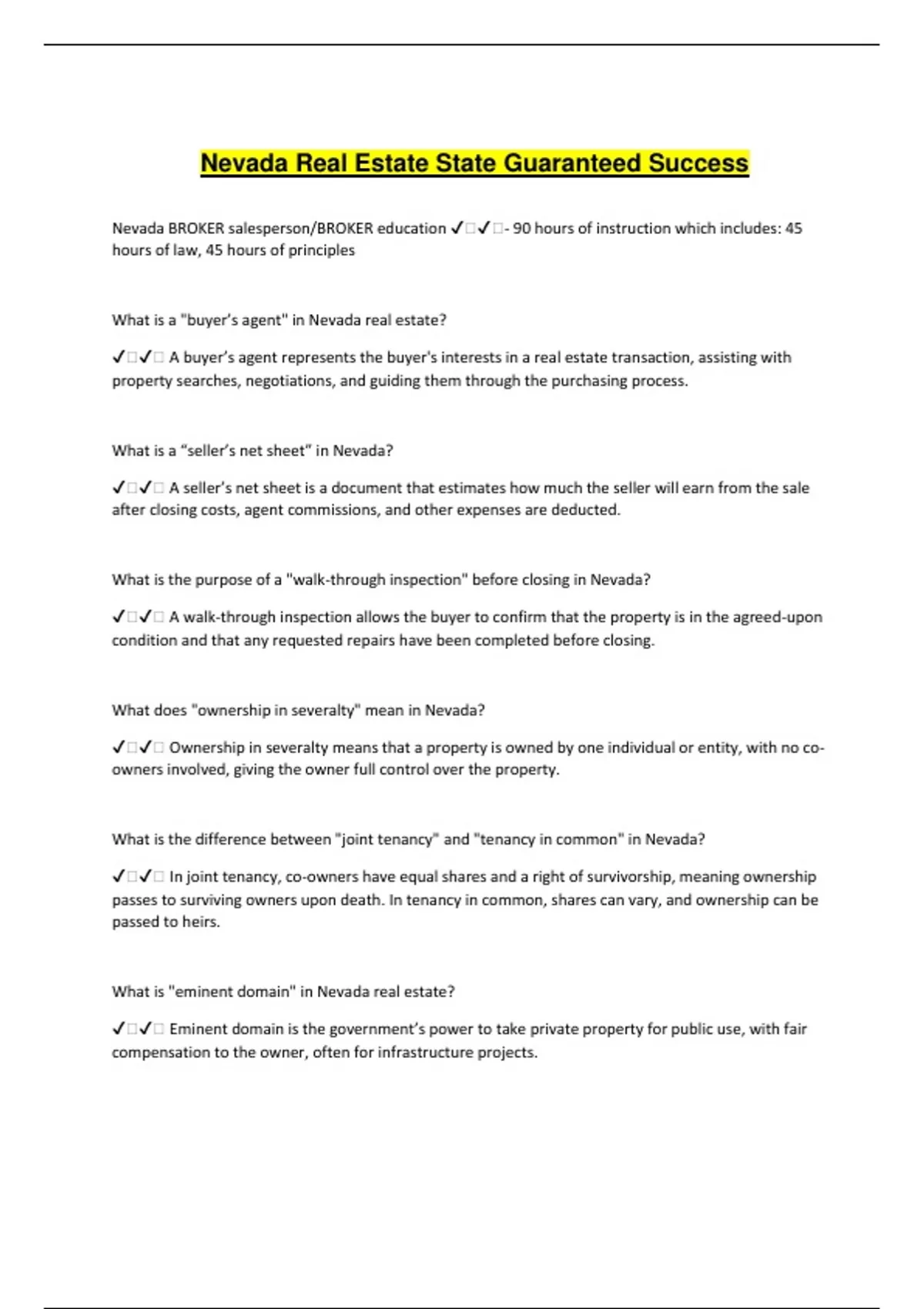 Nevada BROKER salesperson/BROKER education ✔️✔️- 90 hours of instruction which includes: 45