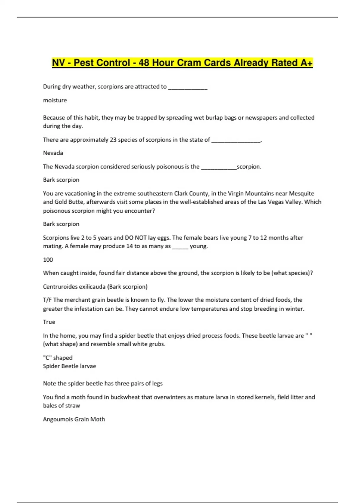 NV - Pest Control - 48 Hour Cram Cards Already Rated A+
