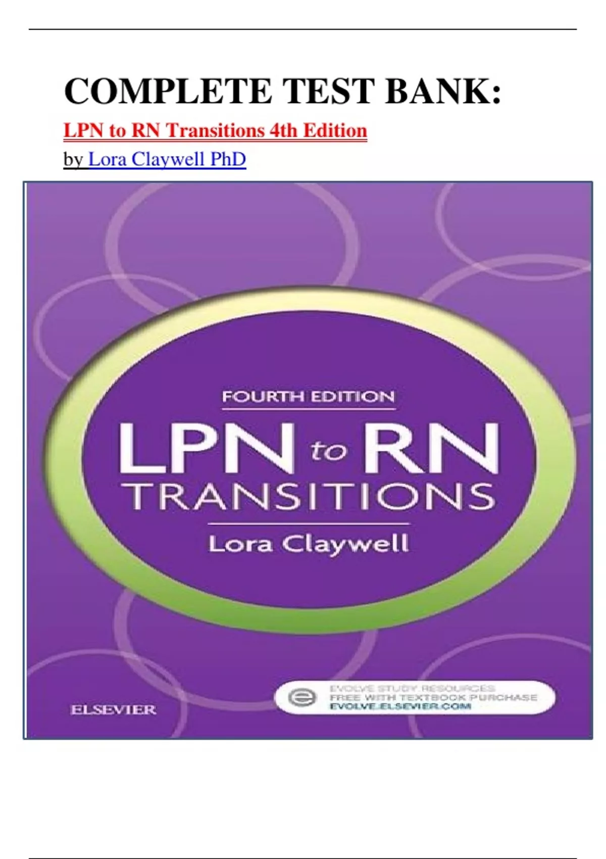 COMPLETE TEST BANK: LPN to RN Transitions 4th Edition by Lora Claywell PhD latest update.