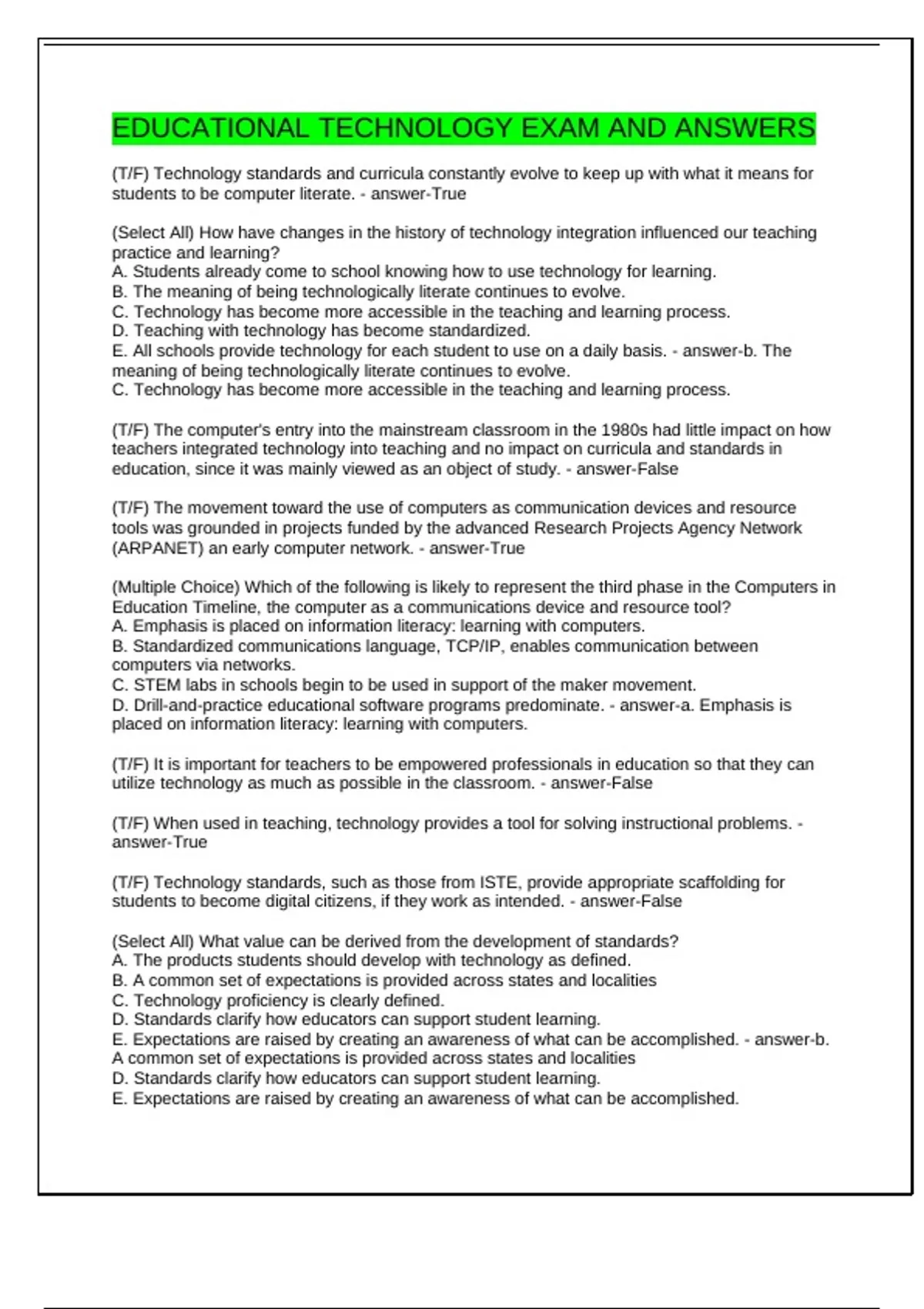 EDUCATIONAL TECHNOLOGY EXAM AND ANSWERS