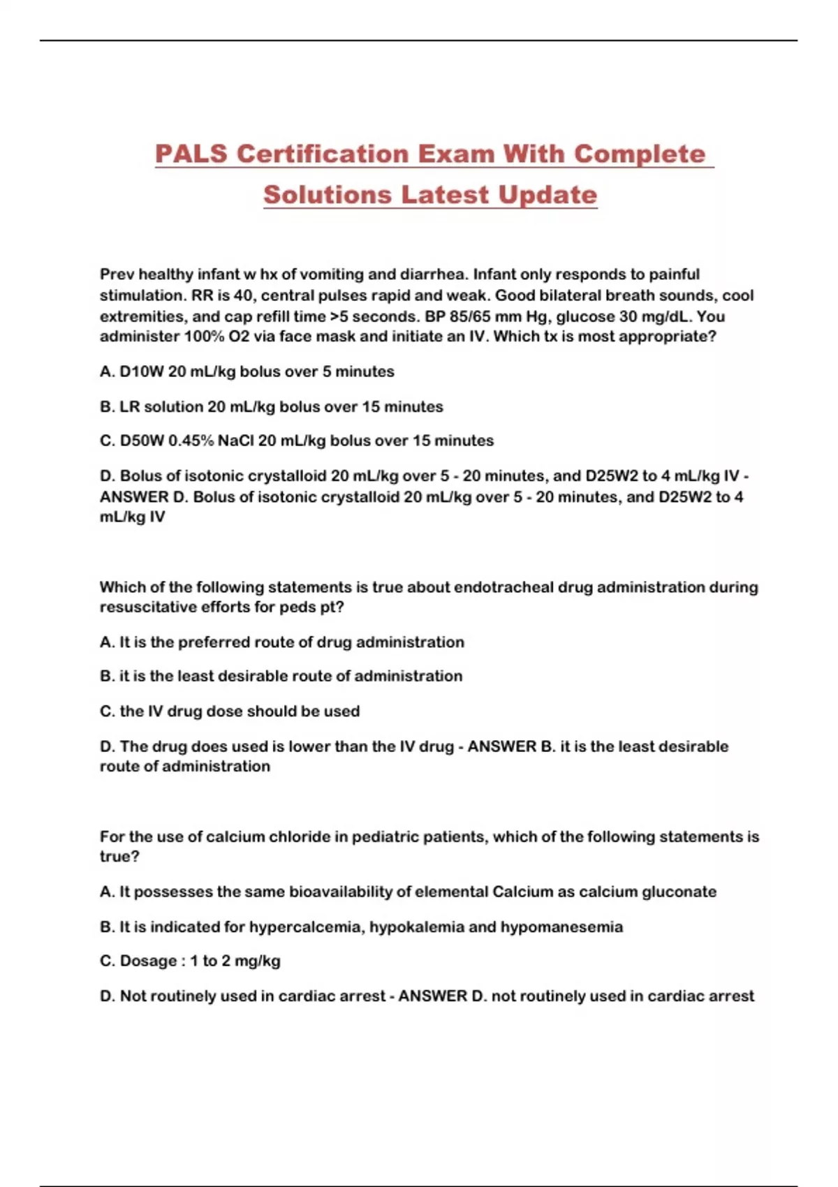 PALS Certification Exam With Complete Solutions Latest Update...