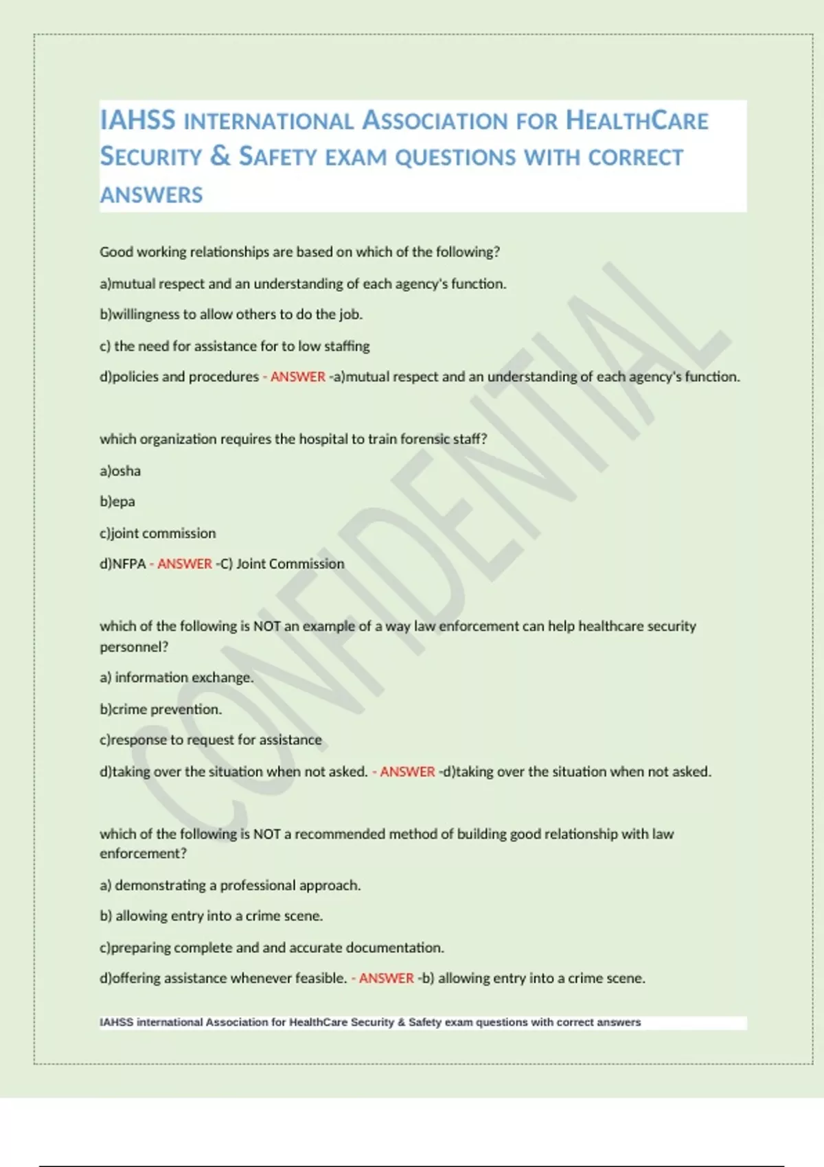 IAHSS international Association for HealthCare Security & Safety exam questions with correct answers