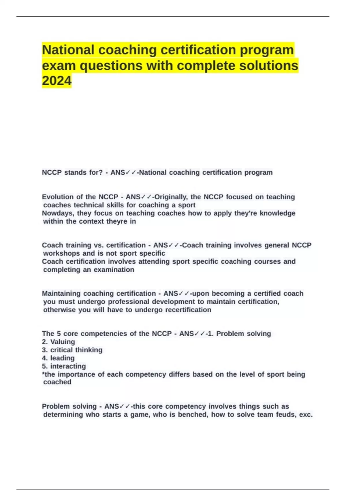 National coaching certification program exam questions with complete solutions 2024