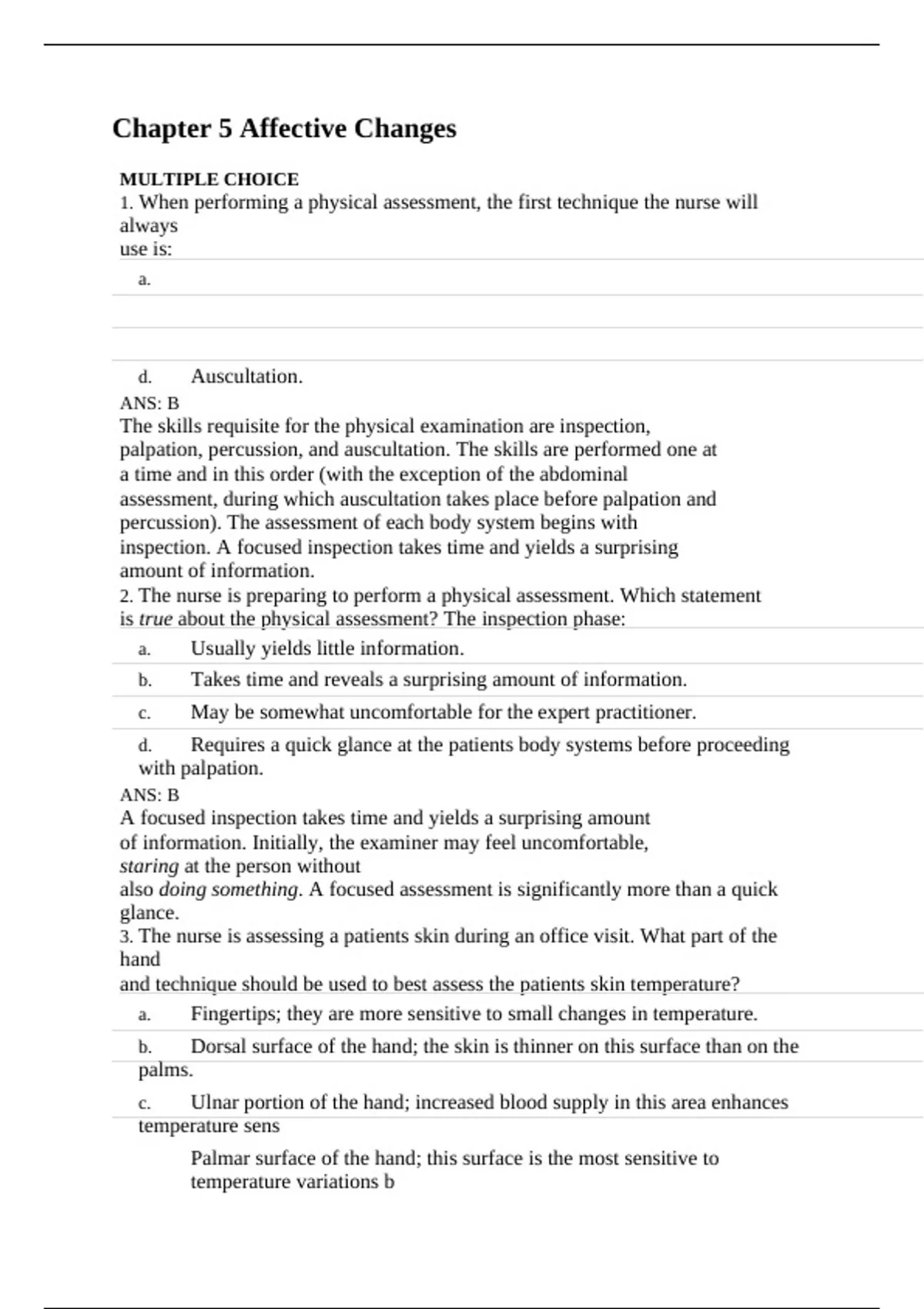 2. The nurse is preparing to perform a physical assessment. Which statement