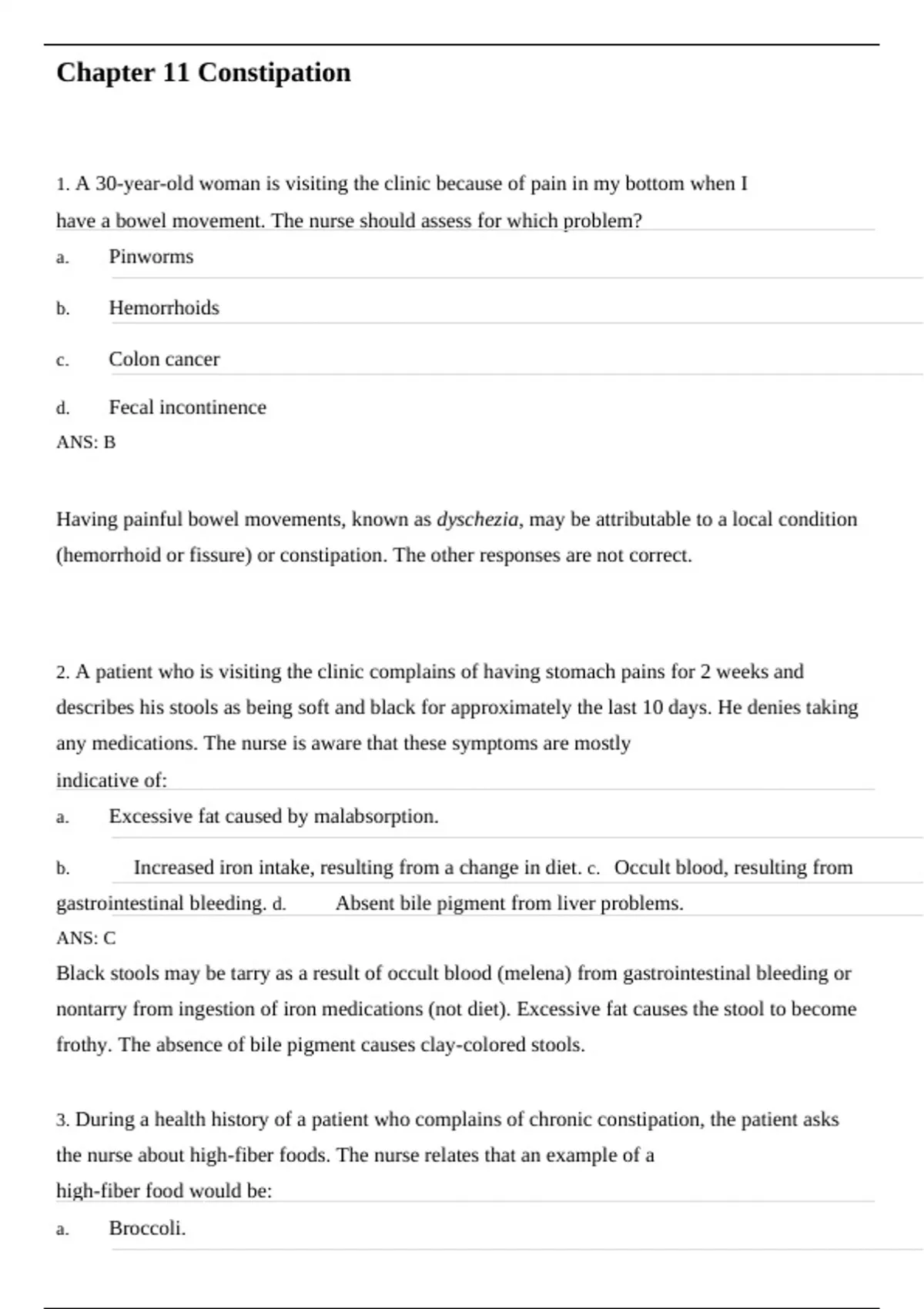 3. During a health history of a patient who complains of chronic constipation, the patient asks