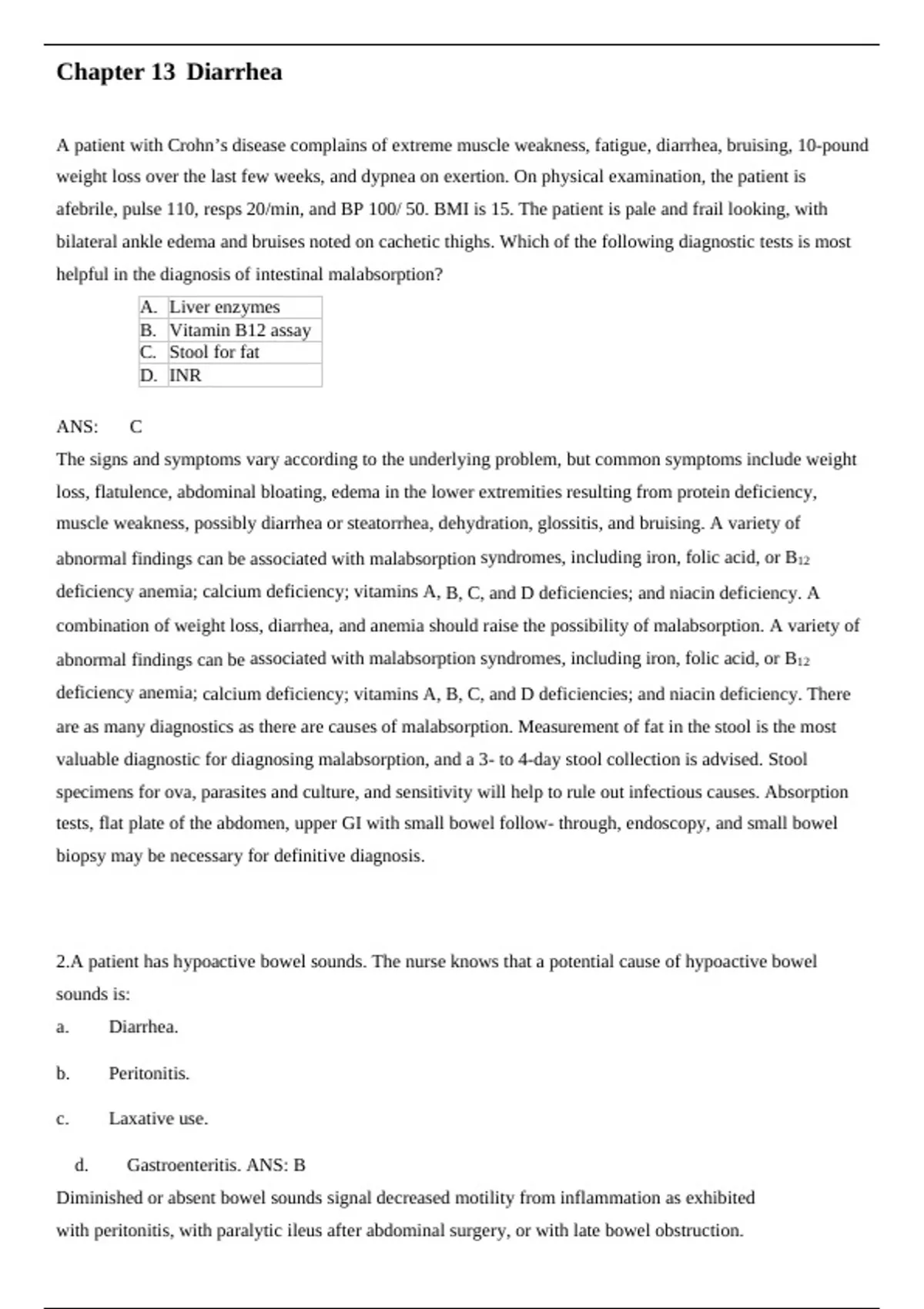 A patient with Crohn’s disease complains of extreme muscle weakness, fatigue, diarrhea, bruising, 10-pound