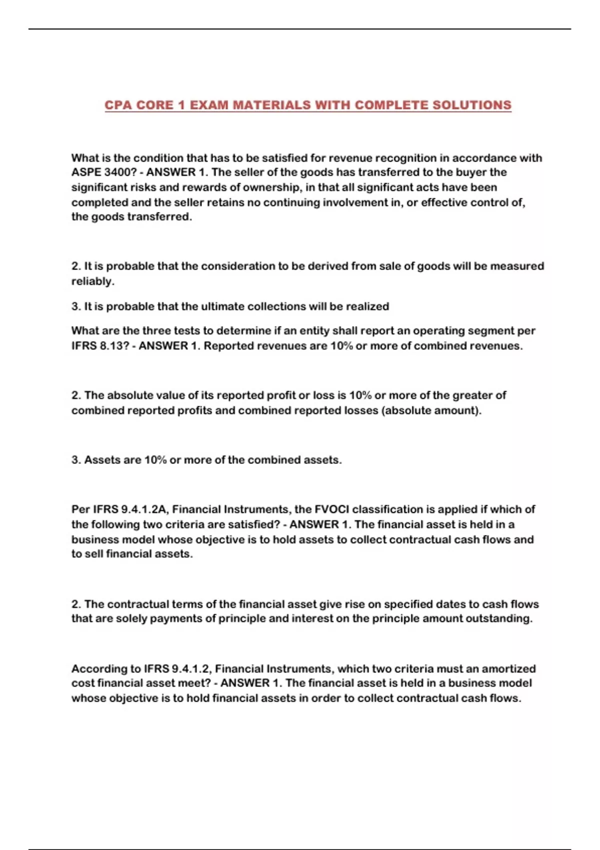 CPA CORE 1 EXAM MATERIALS WITH COMPLETE SOLUTIONS...