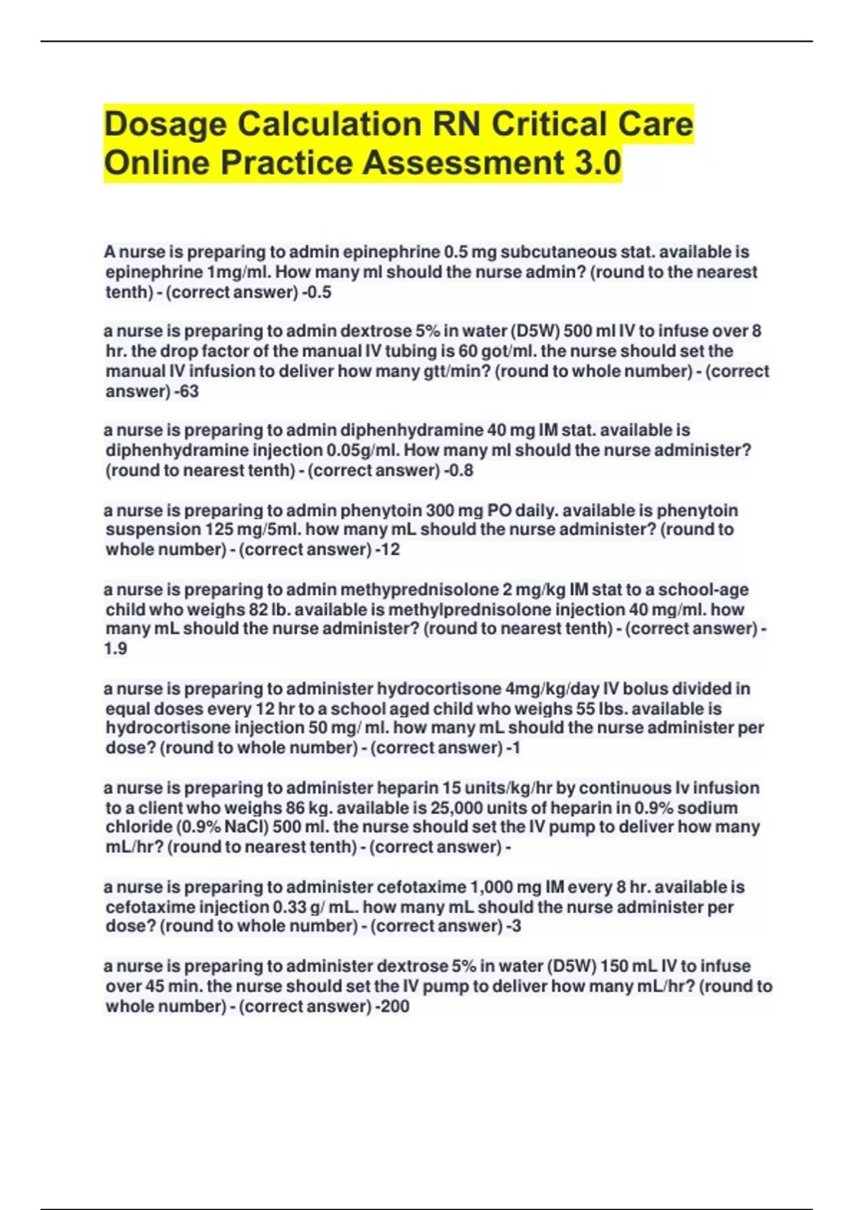 many mL should the nurse administer? (round to nearest tenth) - (correct answer) -