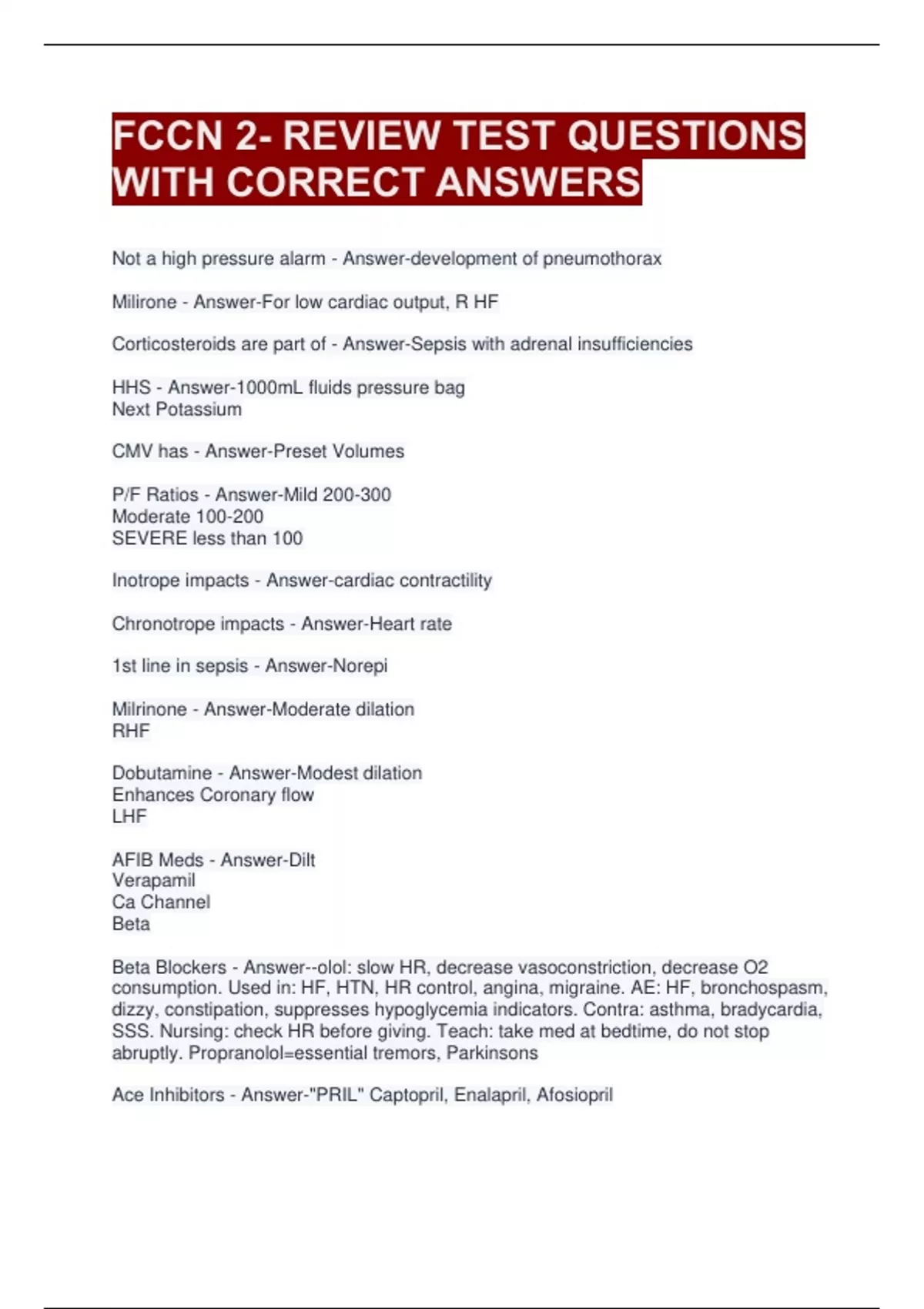 Milirone - Answer-For low cardiac output, R HF