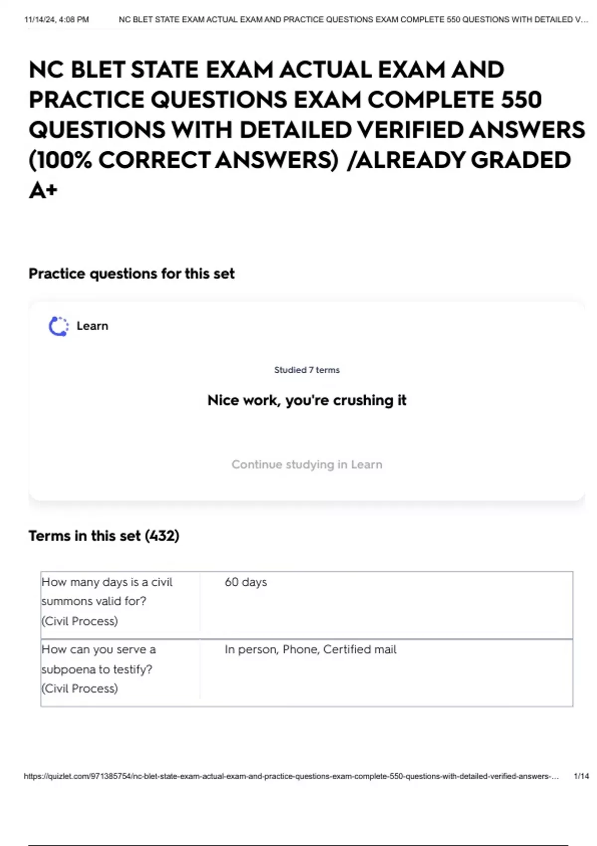 , 11/14/24, 4:08 PM NC BLET STATE EXAM ACTUAL EXAM AND PRACTICE QUESTIONS EXAM COMPLETE 550 QUESTIONS WITH DETAILED V…