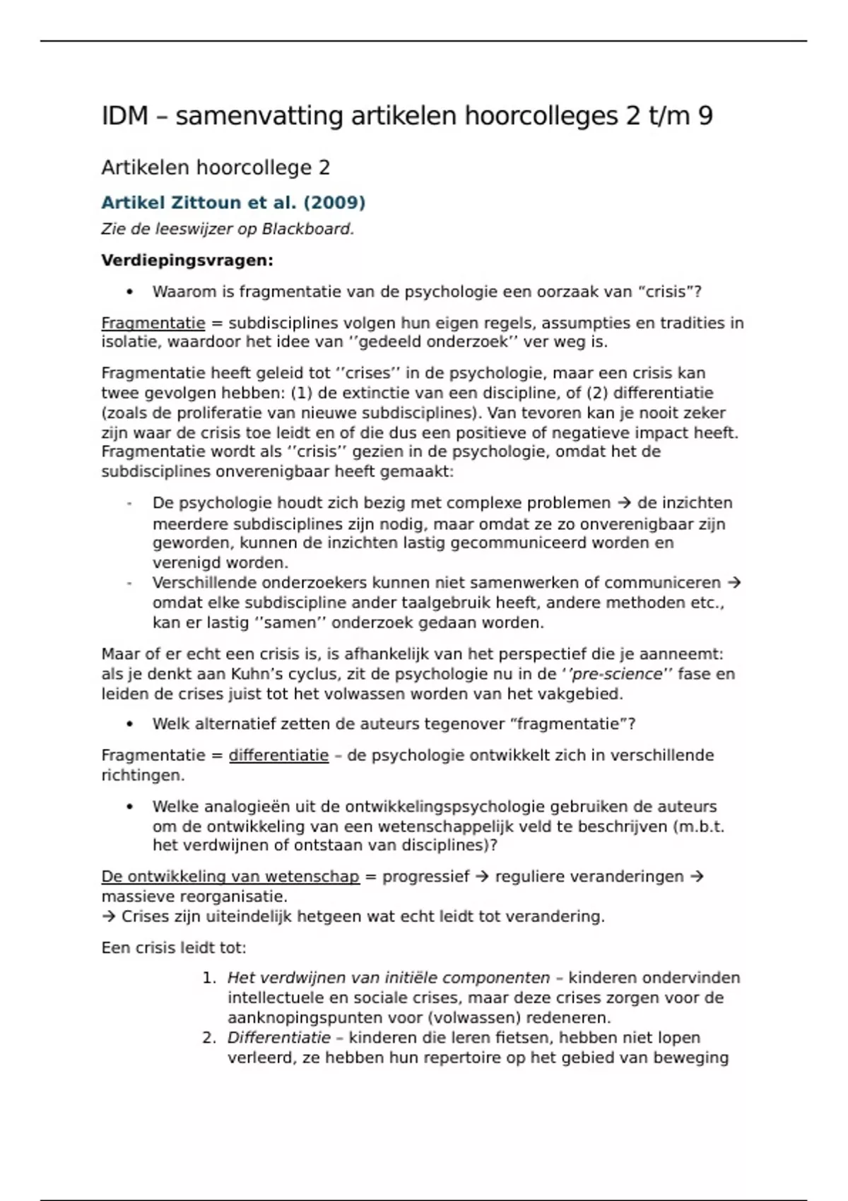 IDM – samenvatting artikelen hoorcolleges 2 t/m 9