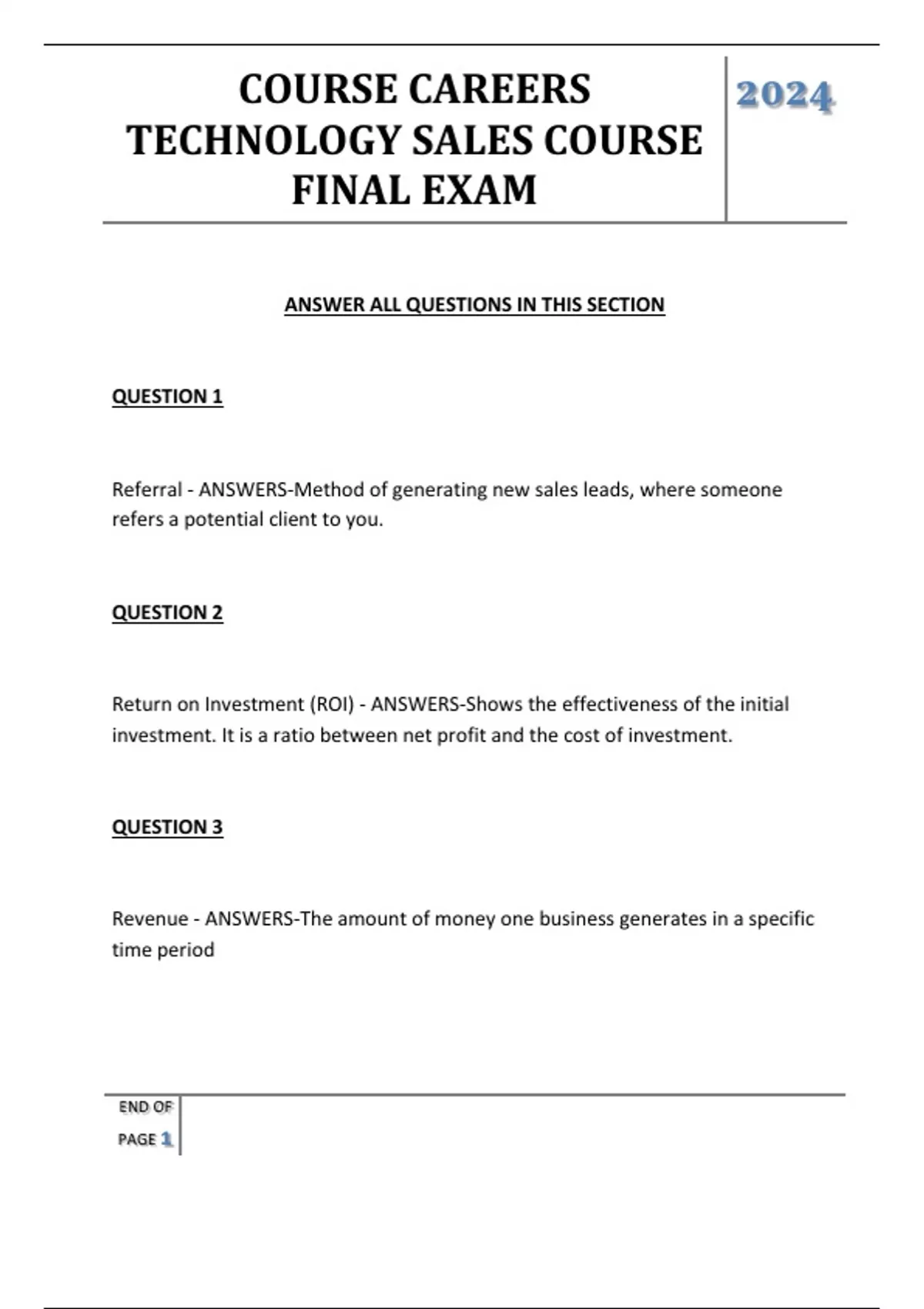 TECHNOLOGY SALES COURSE