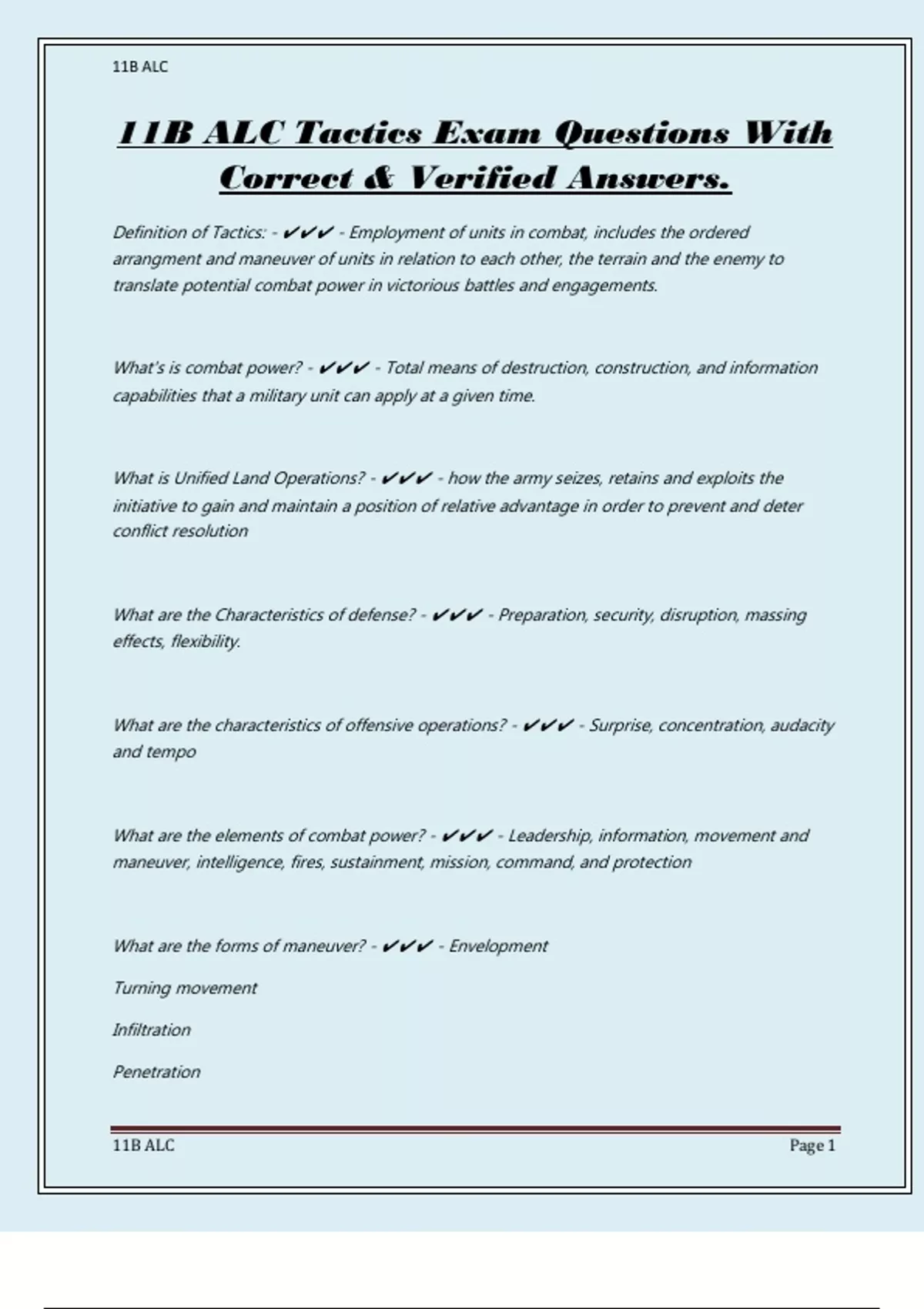 11B ALC Tactics Exam Questions With Correct & Verified Answers.