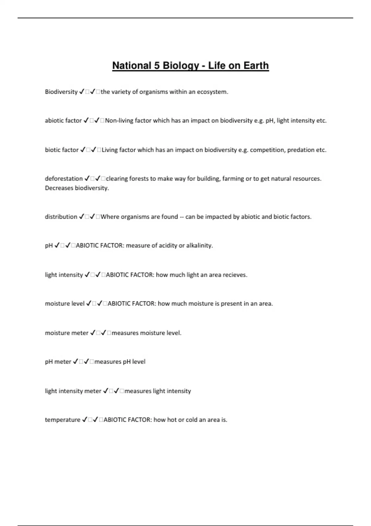 abiotic factor ✔️✔️Non-living factor which has an impact on biodiversity e.g. pH, light intensity etc.