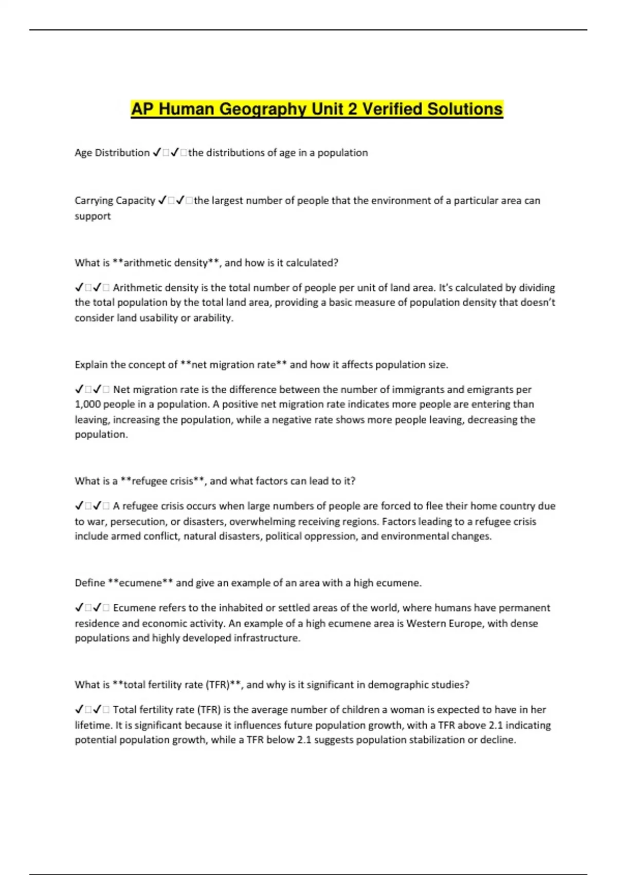 ✔️✔️ Arithmetic density is the total number of people per unit of land area. It’s calculated by dividing