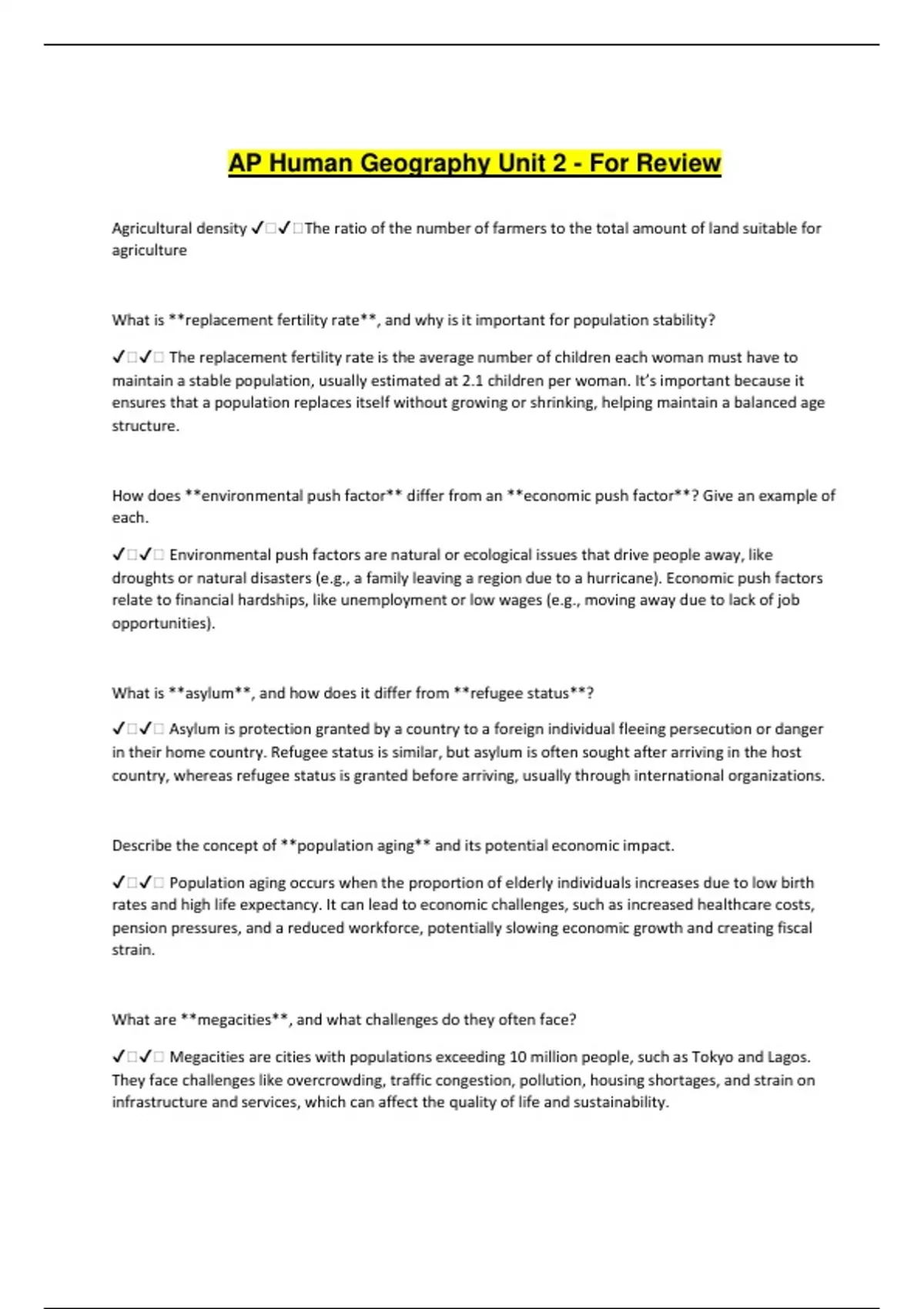 ✔️✔️ Megacities are cities with populations exceeding 10 million people, such as Tokyo and Lagos.