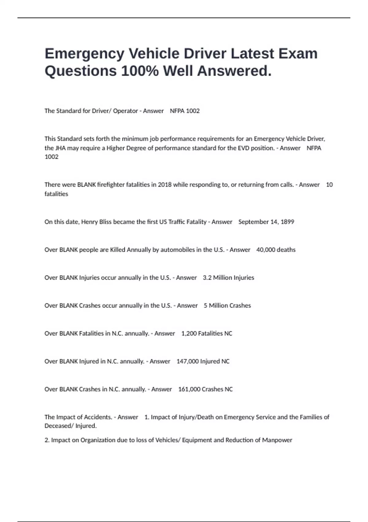 The Standard for Driver/ Operator - Answer NFPA 1002