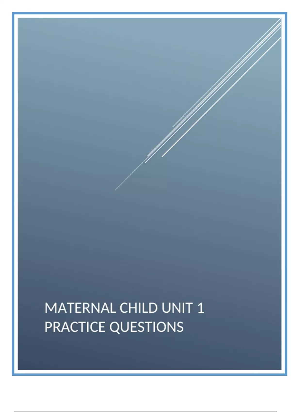 , MATERNAL CHILD UNIT 1 PRACTICE QUESTIONS WITH