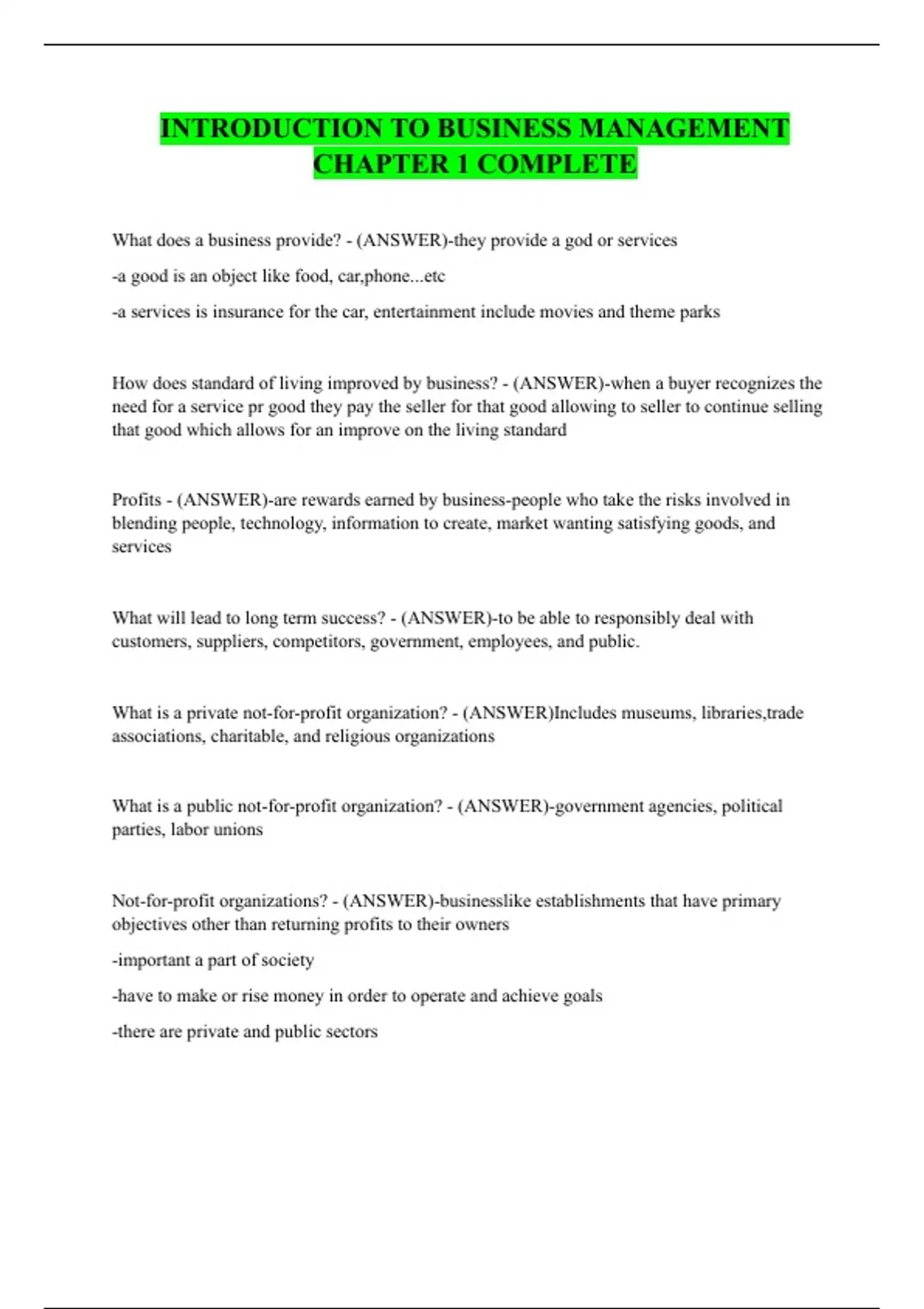 What does a business provide? - (ANSWER)-they provide a god or services