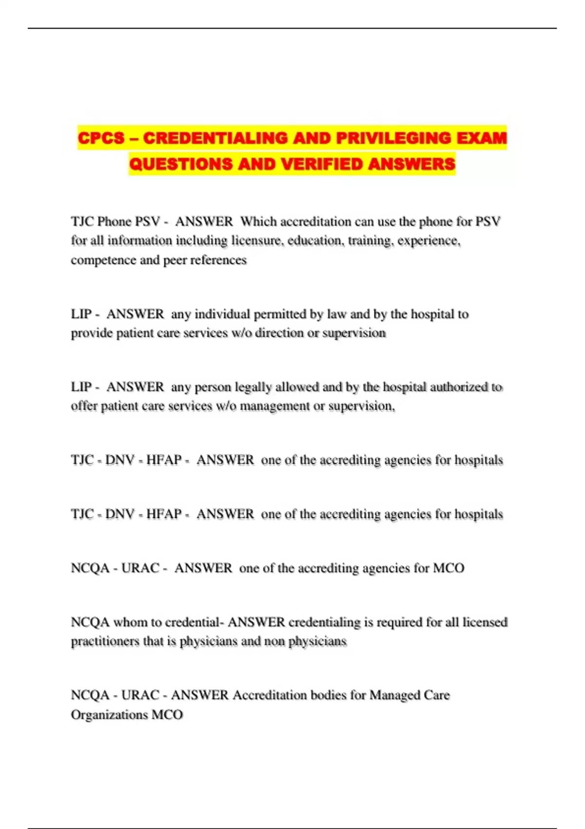 CPCS – CREDENTIALING AND PRIVILEGING EXAM