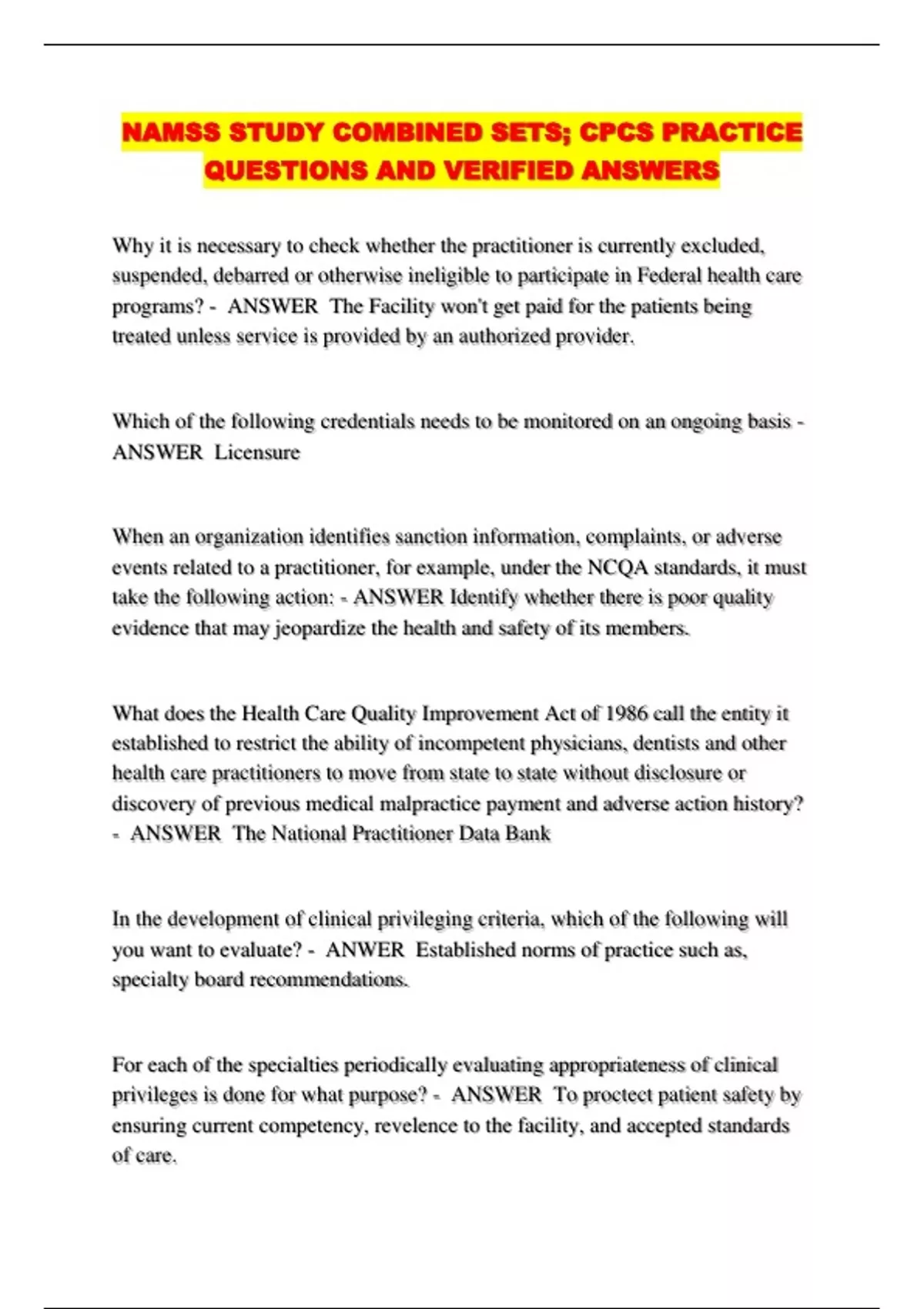 NAMSS STUDY COMBINED SETS; CPCS PRACTICE