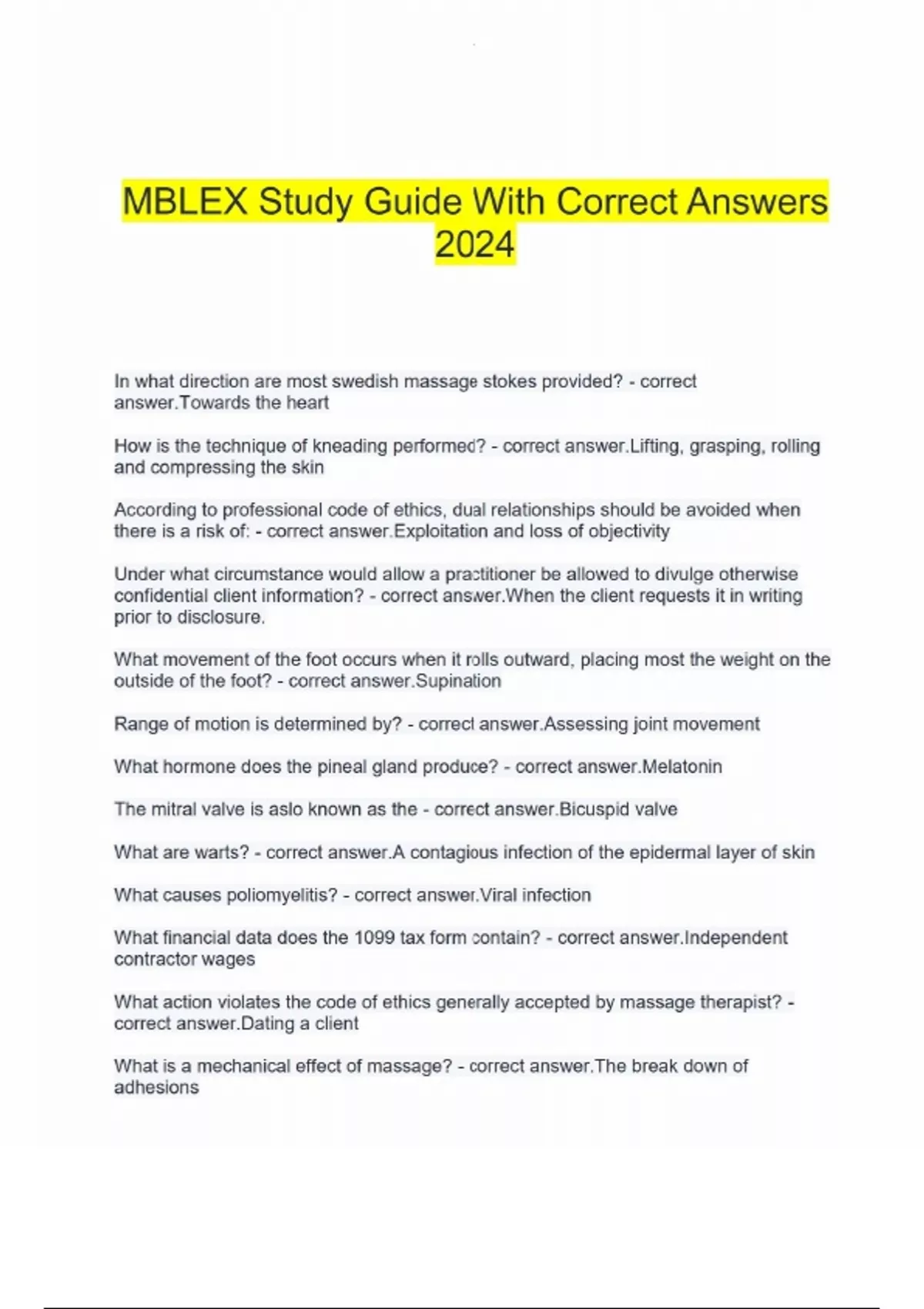 MBLEX Study Guide With Correct Answers 2024