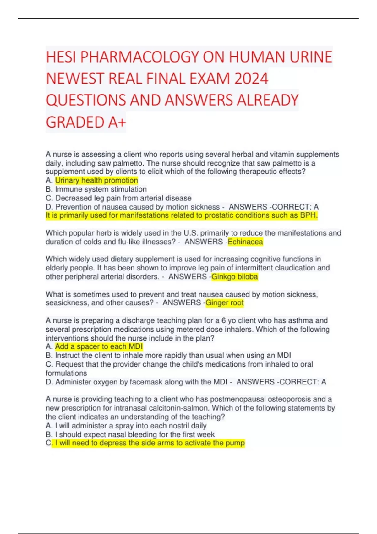 daily, including saw palmetto. The nurse should recognize that saw palmetto is a