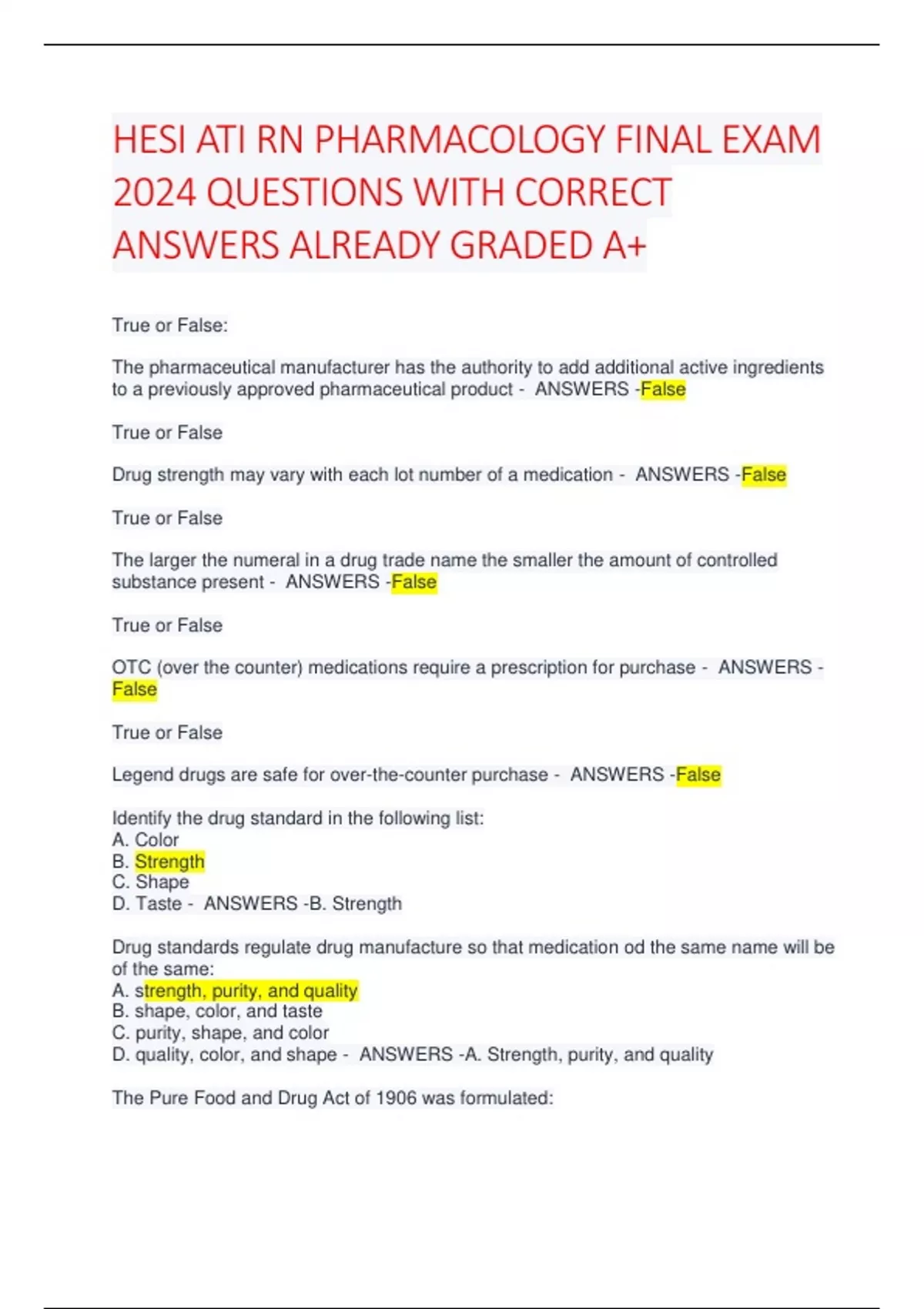 HESI ATI RN PHARMACOLOGY FINAL EXAM 2024 QUESTIONS WITH CORRECT ANSWERS ALREADY GRADED A+