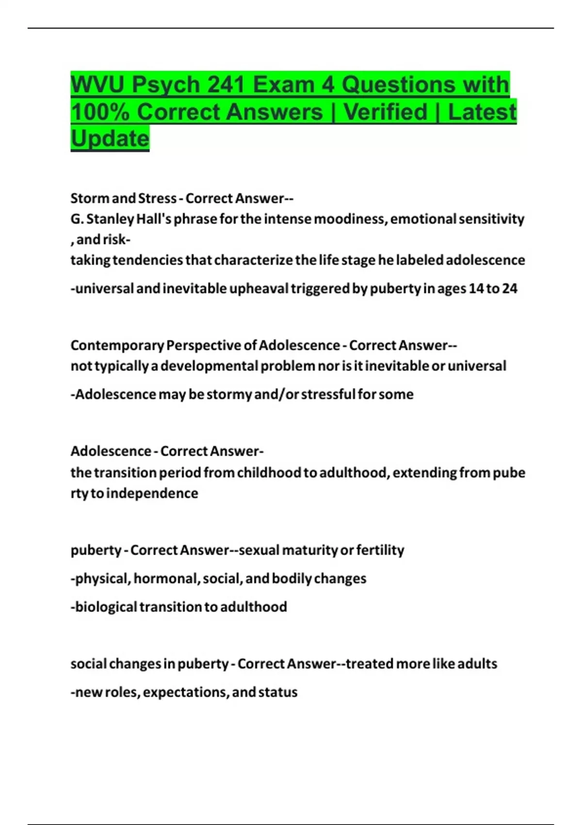 WVU Psych 241 Exam 4 Questions with 100% Correct Answers | Verified | Latest Update