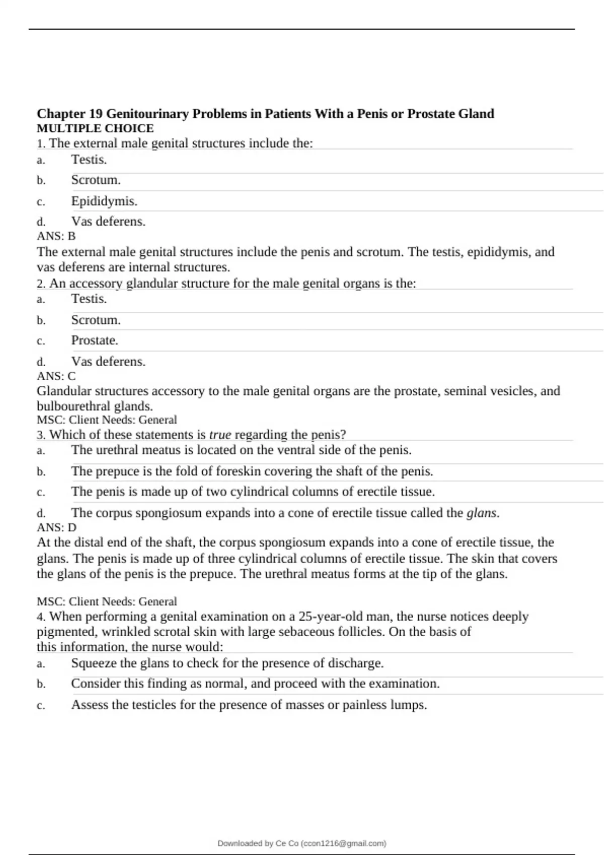 1. The external male genital structures include the: