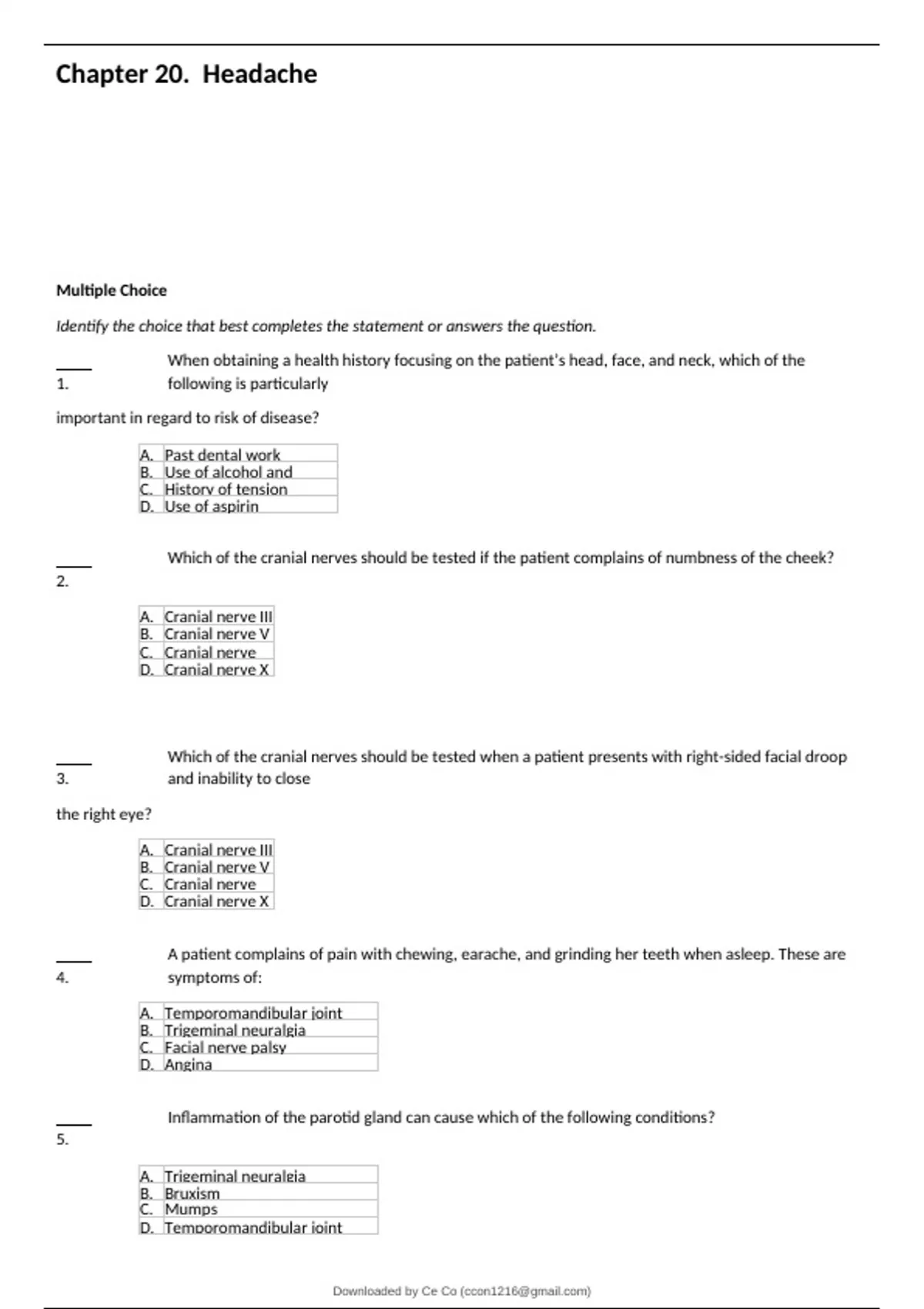 Which of the cranial nerves should be tested if the patient complains of numbness of the cheek?