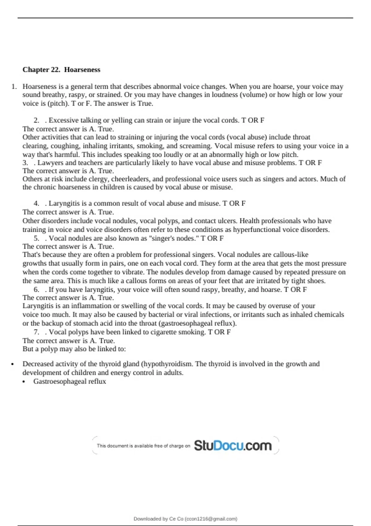 7. . Vocal polyps have been linked to cigarette smoking. T OR F