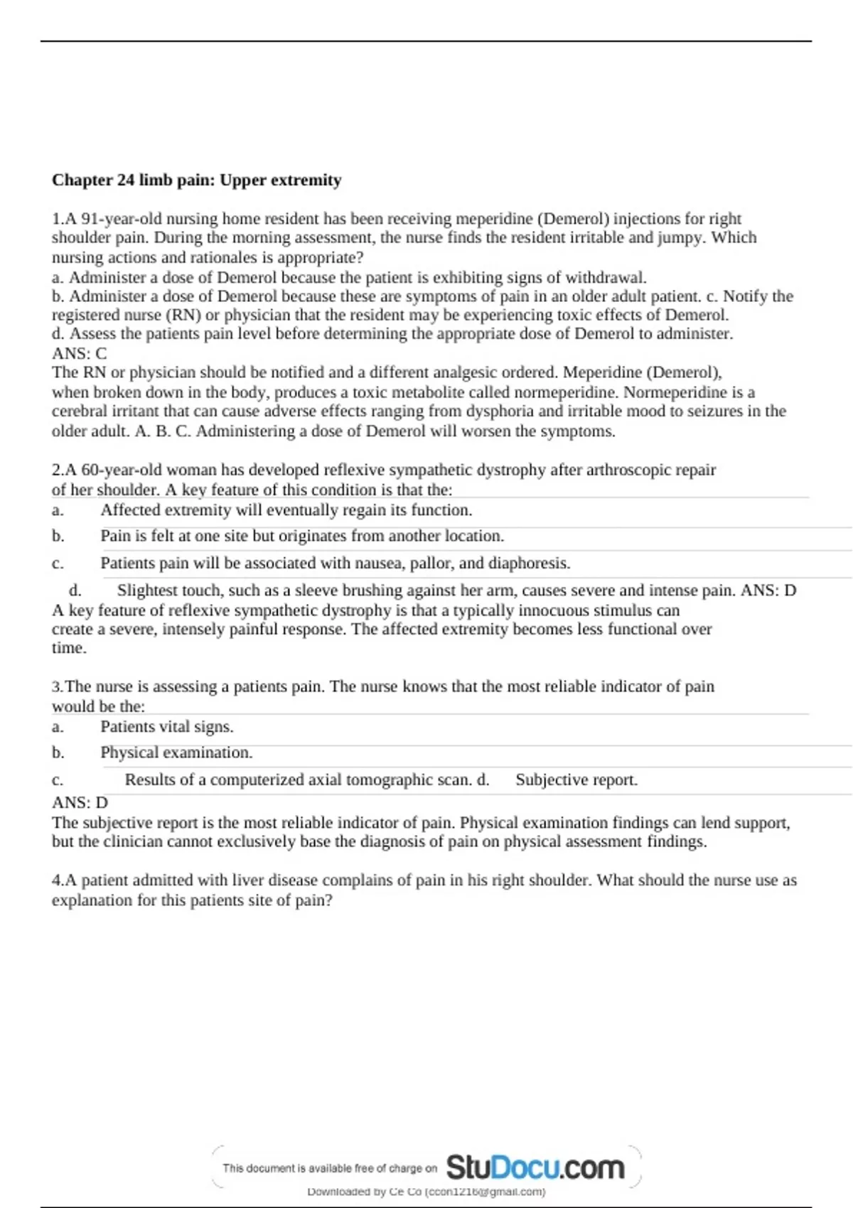 older adult. A. B. C. Administering a dose of Demerol will worsen the symptoms.