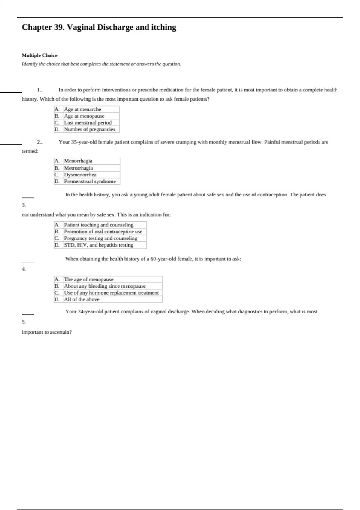 Chapter 39. Vaginal Discharge and itching