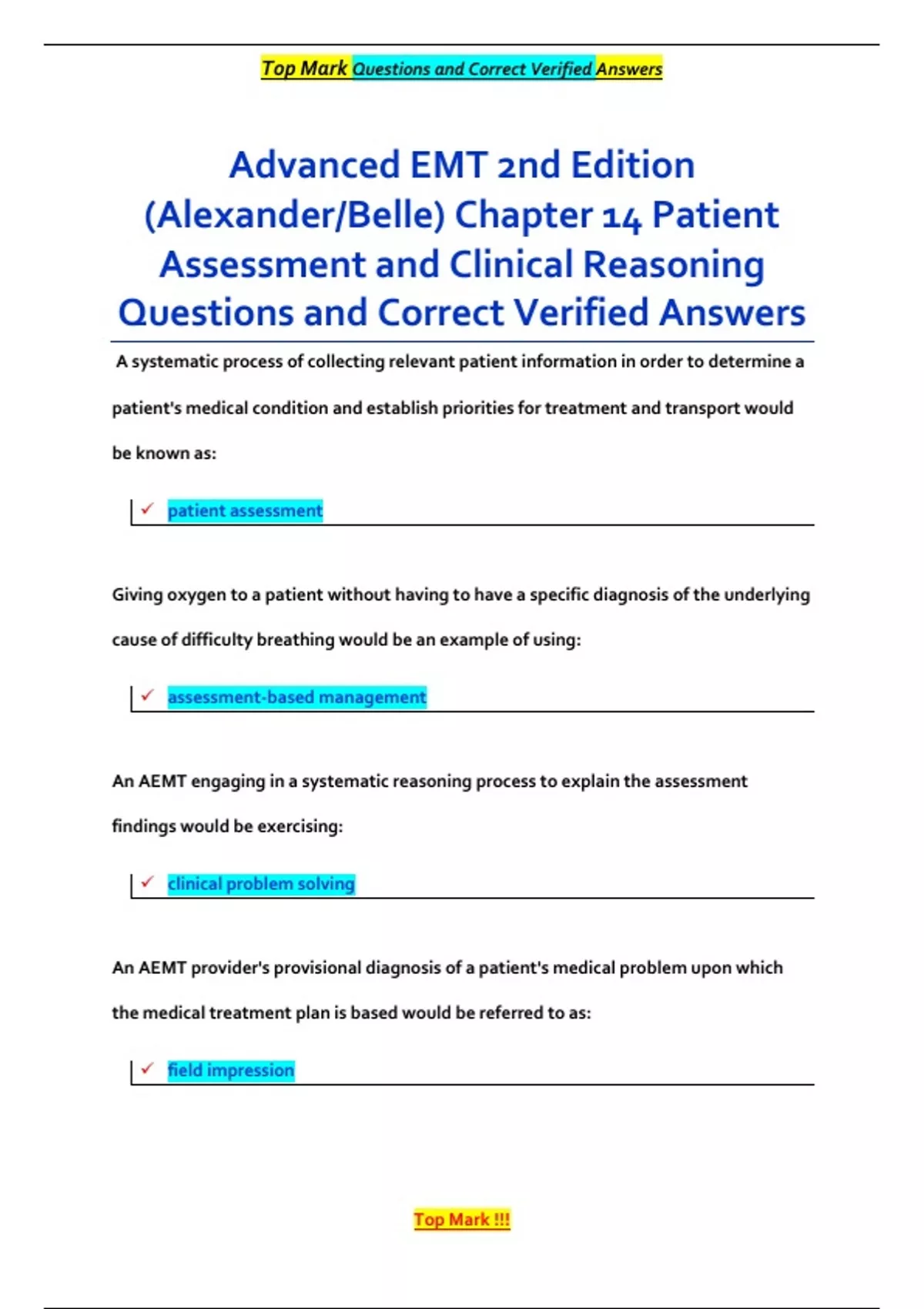 , Top Mark Questions and Correct Verified Answers