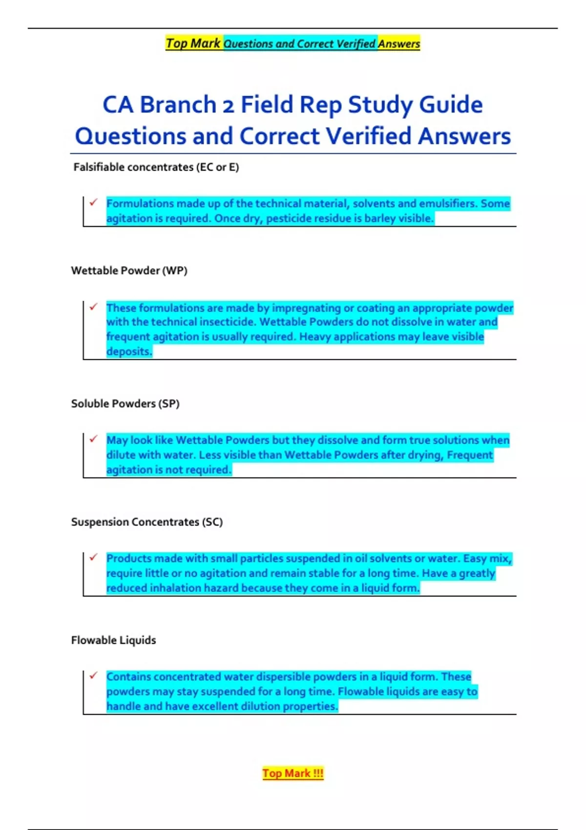 , Top Mark Questions and Correct Verified Answers