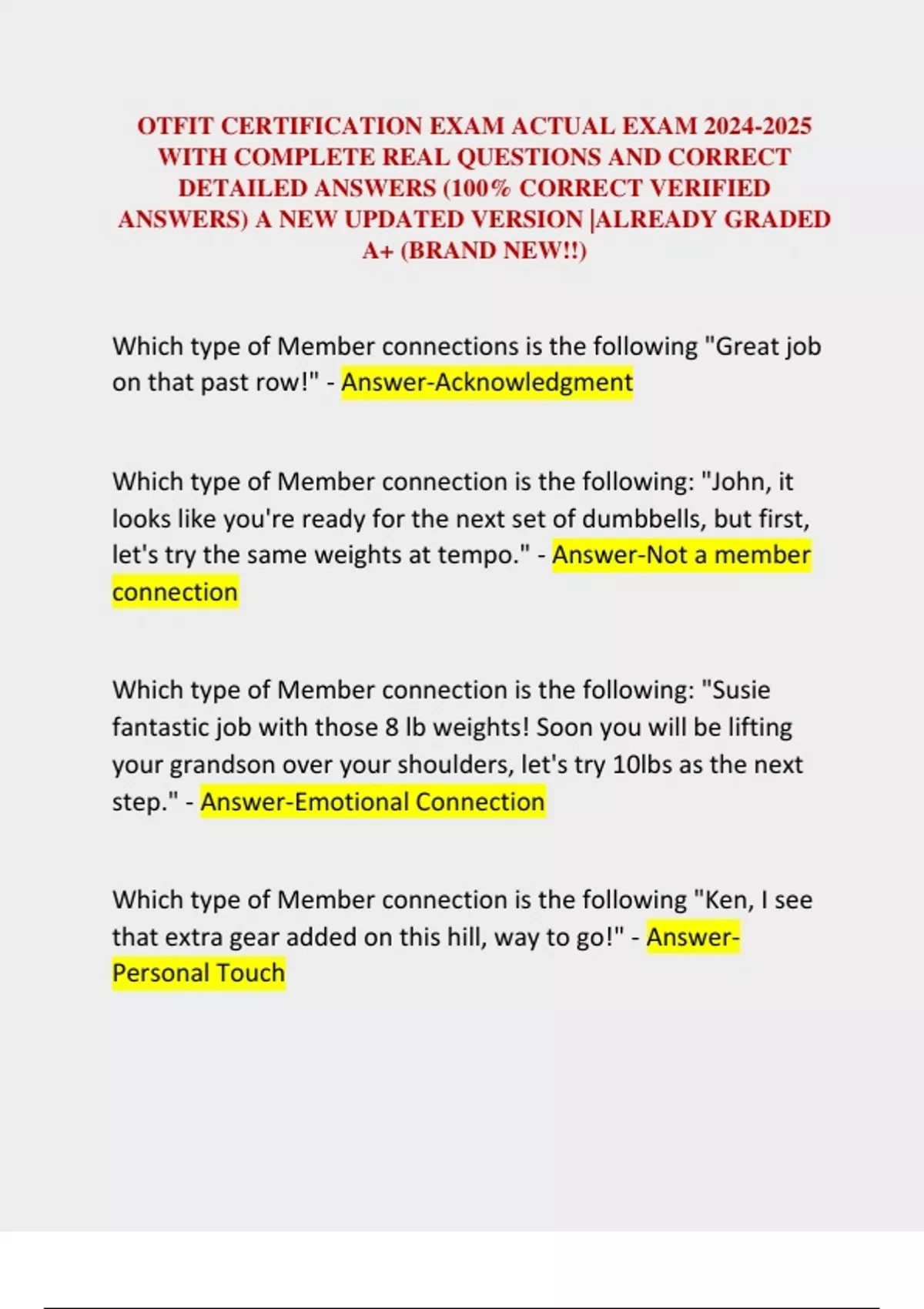 OTFIT CERTIFICATION EXAM ACTUAL EXAM WITH COMPLETE REAL QUESTIONS AND CORRECT DETAILED ANSWERS (100% CORRECT VERIFIED ANSWERS) A NEW UPDATED VERSION |ALREADY GRADED A+ (BRAND NEW!!)